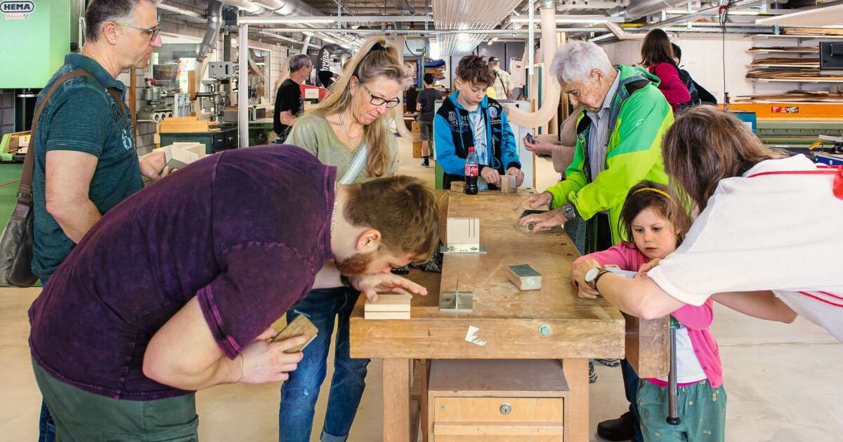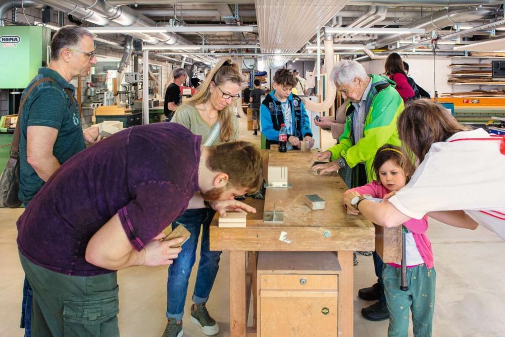 Am Samstag, 13. April, fand im Rahmen der Eröffnungsfeierlichkeiten des neuen Ausbildungszentrums Trio der Maler, Schreiner und Metallbauer der «Tag der offenen Tür» statt. Rund 500 Personen fanden den Weg nach Itingen BL und waren beeindruckt von den Werkstätten, dem Flair und der Stimmung im Ausbildungszentrum. Mit Begeisterung widmeten sich die Besucherinnen und Besucher Arbeiten wie dem Schleifen, Schweissen und Lackieren, bevor sie ihr «Spezial-Zündholz-Gestell» mit nach Hause nehmen durften. Instruiert und unterstützt wurden sie fachmännisch von den zahlreichen Lernenden, die ihr Wissen mit Leidenschaft weitervermittelten, und vor allem den jungen Leuten ihren Beruf schmackhaft machten. Die Stimmung an diesem Frühlingstag hätte nicht besser sein können, und so freute es das Organisationskomitee, dass die Leute nach getaner Arbeit die warmen Sonnenstrahlen genossen und gemütlich beisammensassen. Sie genossen die Köstlichkeiten von drei Foodtrucks, bevor sie im Formel-1-Simulator dem Streckenrekord nacheiferten oder ihr Glück im Miniatur-Minigolf versuchten. Strahlende Gesichter, wohin das Auge reichte. Die Basis für eine zukunftsfähige Fachkräfteausbildung dieser drei Handwerksberufe ist gelegt.