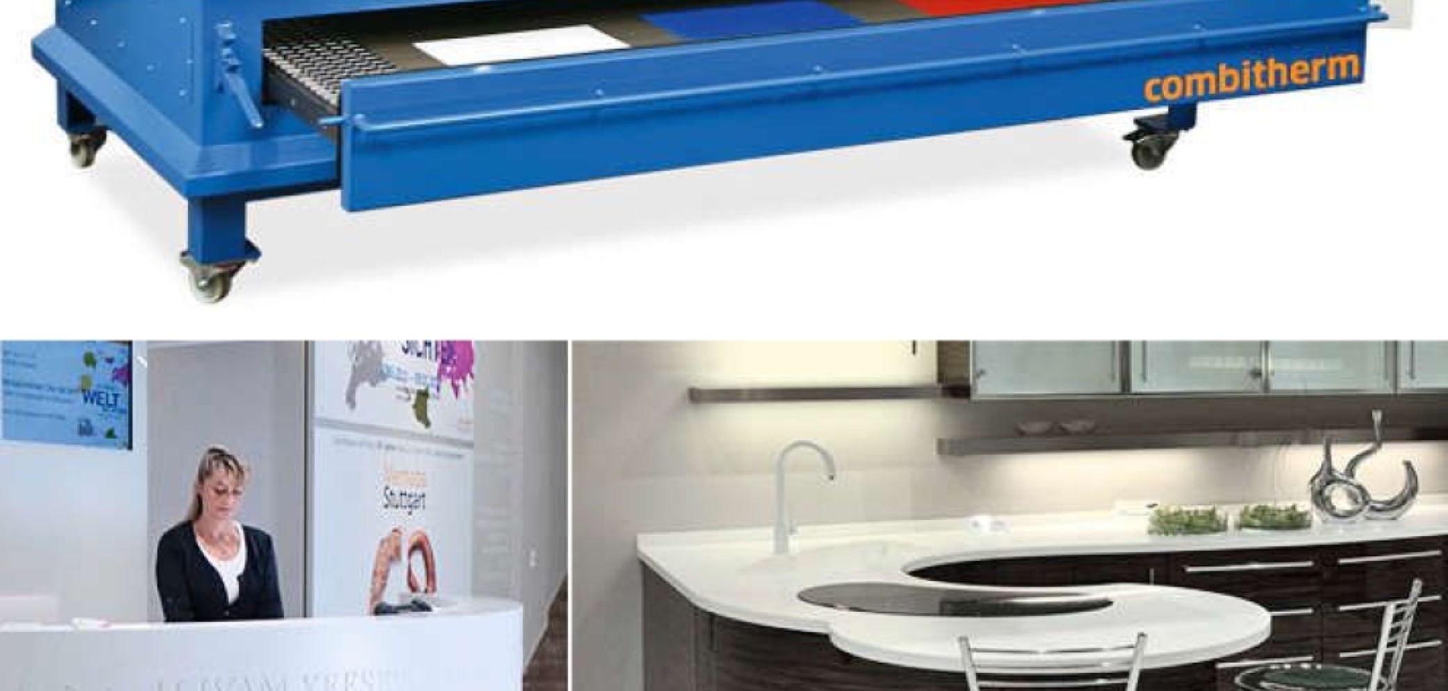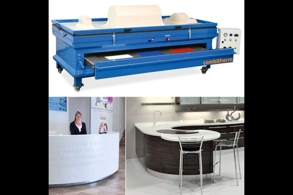 «Combitherm» von der Pfohl GmbH ist eine Anlage zum thermischen Verformen, und natürlich ist sie auch zum Formverleimen, Schichtverleimen oder Beschichten von Platten oder vorgeformten Werkstücken geeignet. Das «Zwei in Einem»-Konzept vereint Aufheiz- und Umformstation in einer Maschine. Die Aufheizstation enthält das «CHS»-Hochleistungs-Umluftheizsystem, welches das Verfärben sowie Festkleben der zu verarbeitenden Materialien verhindert. Die Vakuumpresse ist mit einer Silikon-membran ausgestattet, die Temperaturen bis 220 °C im Dauerbetrieb aushält.