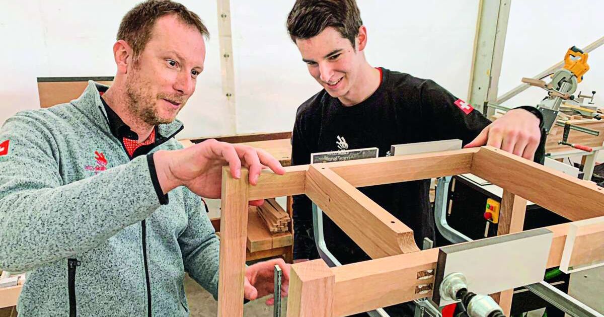 World skills. Brian Thomi, der im Oktober an den World Skills in Shanghai in der Kategorie Möbel teilnehmen wird, hat sein Training wieder intensiviert. Der Aargauer übt nun bis zur Berufs-WM im Betrieb von Chefexperte Tobias Hugentobler in Braunau TG.