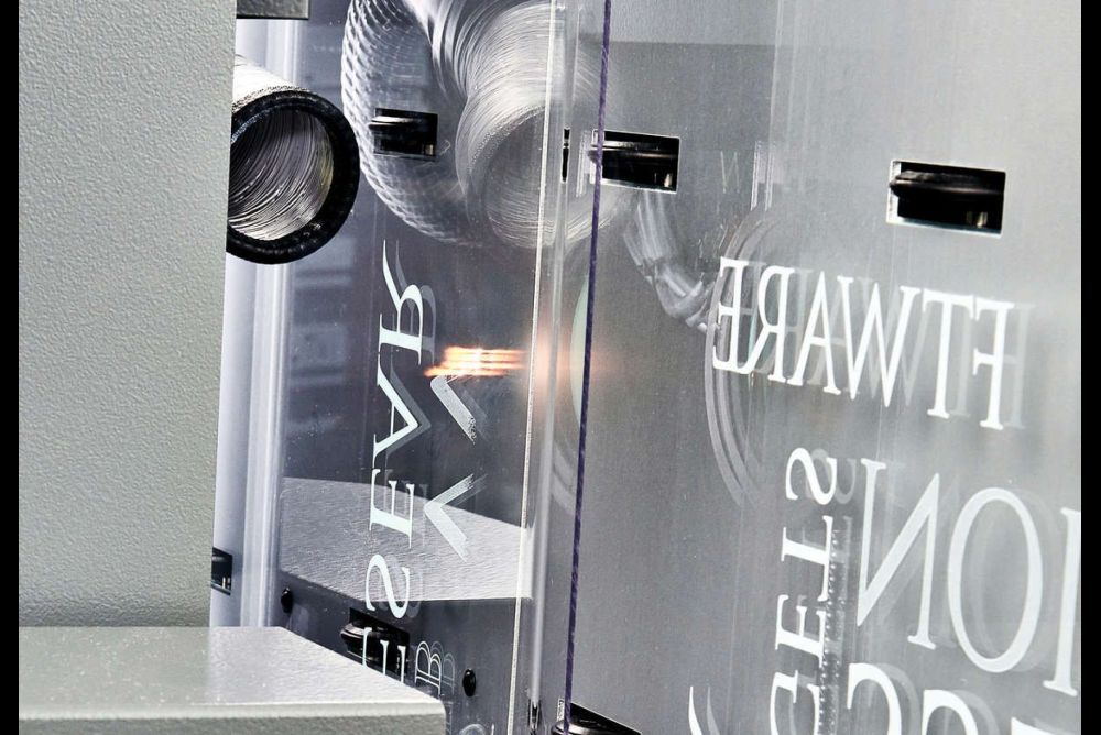 Lasergravuren. Neue Techniken können bisherige handwerkliche Vorgehensweisen ergänzen und sogar massiv erweitern. Mit modernen Laseranlagen lassen sich digitale Datensätze von Grafiken und Bildern schablonenfrei auf Oberflächen und ins Innere von Glasscheiben brennen.
