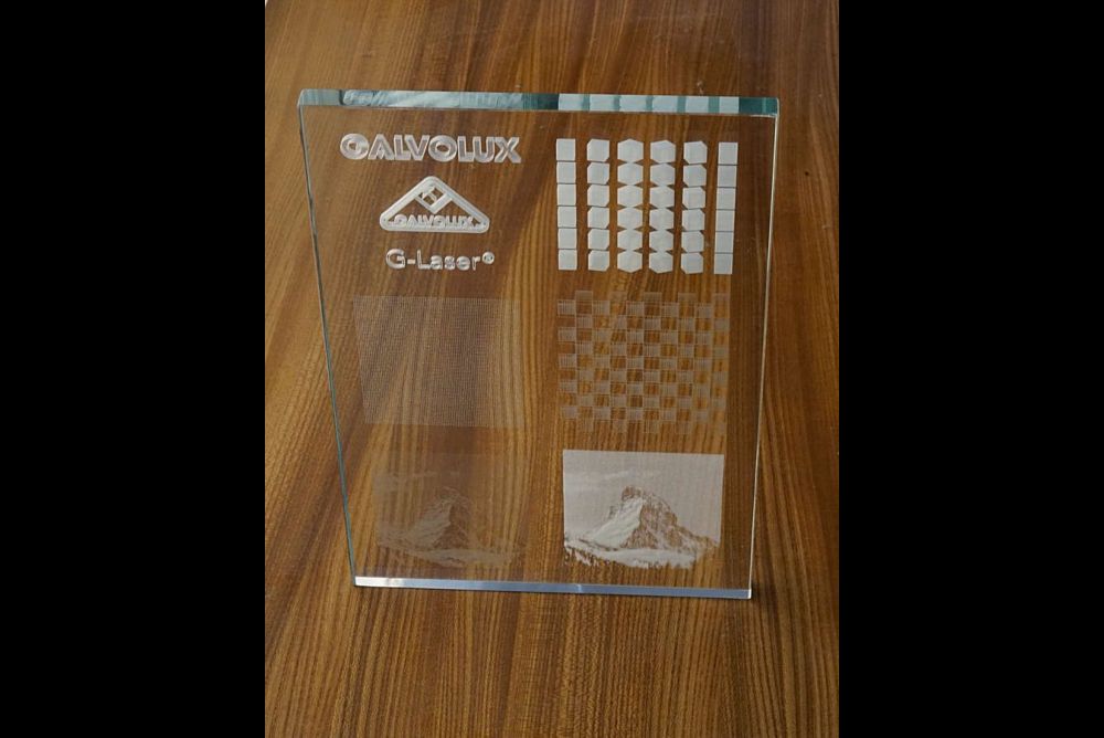 Beim Unternehmen Galvolux SA in Bioggio TI zeigt schon das Firmen-Musterglas, dass in der Tiefe abwechselnd auf zwei Ebenen gravierte Quadrate eine intensivere Art des Schachbrettmusters ergeben. Und dieses Spiel mit den Ebenen kann noch viel weiter getrieben werden, denn auch Verbundsicherheitsgläser können durch die Folien hindurch in allen Schichten graviert werden, ohne dass es dadurch zu technischen Nachteilen kommt.