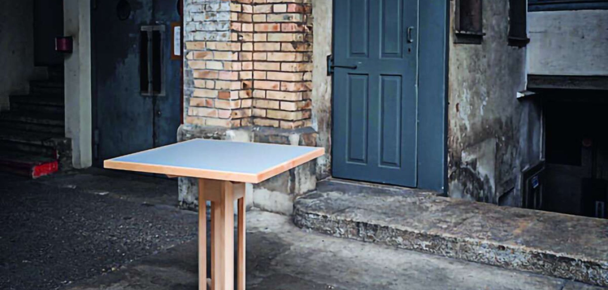Schindlersalmerón bietet mit dem «Holzzentralfusstisch» einen Tisch für unterschiedlichste Zwecke, unterschiedlichste Orte und unterschiedlichste Benutzer an. Es wurde ein Konstruktionssystem entwickelt, das es ermöglicht, den Tischfuss sowie die Tischgrösse den Bedürfnissen des Kunden anzupassen. Die minimale Grösse beginnt bei 750 × 750 × 750 mm und einem Gewicht von rund 11 kg. Rahmen und Beine bestehen aus massivem Eschenholz. Die Tischplatte wird standardmässig aus einer furnierten Sperrholzplatte gefertigt, die mit Massivholzkanten gefasst ist. Sie ist optional auch aus Massivholz oder belegt mit HPL-Platten erhältlich.
