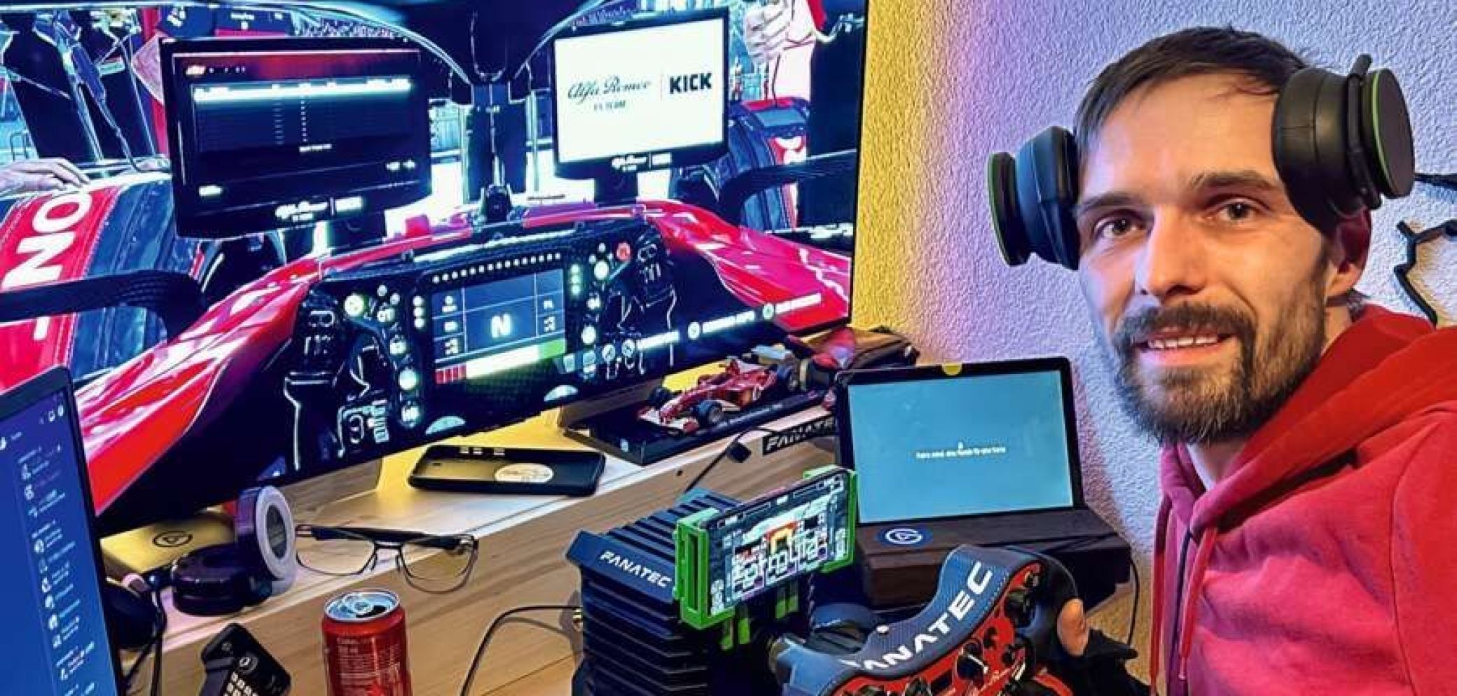 Der Asphalt flimmert. Gerade schaut ein Mechaniker ins Cockpit seines Formel-1-Boliden. Tix hält den Daumen hoch. Und dann zieht er sich seine Rennhandschuhe an. So ein Hightechlenkrad mit Riemenantrieb muss man fest im Griff haben, um nicht neben der Strecke zu landen. Heute entschied sich Tix für harte Reifen und 41 Kilo Sprit. Formel-1-Piloten sind coole Typen. Die Welt liegt ihnen zu Füssen, aber eben nur in der realen Welt. Doch das Cockpit des Alfa Romeo, in dem Tix da an den Start geht, ist aus Holz und selbst gebaut – wie könnte es bei einem Schreiner anders sein. Es nimmt ein Drittel seines Gamer-Zimmers am Stadtrand von Frauenfeld ein. Vor einem Jahr packte den 36-Jährigen das Formel-1-Fieber. Es begann mit einem Aufruf auf Facebook. Und dann ging es im Formel-1-Tempo weiter. «Angeklickt, vorgestellt, angenommen, Proberennen», sagt er. Aktuell fährt «Tixer87», wie er sich in der Szene nennt, Ligarennen in der «Sim Racing League» als Stammfahrer im Rookiesplit, das heisst im Feld der Neulinge. Als Rennleiter ist er zudem Planer und Organisator. Bei ihm laufen nicht nur die Fäden zusammen. Er ist es auch, der die heissgelaufenen Jungs im Team auseinanderbringt, wenn die Nerven blank liegen.
