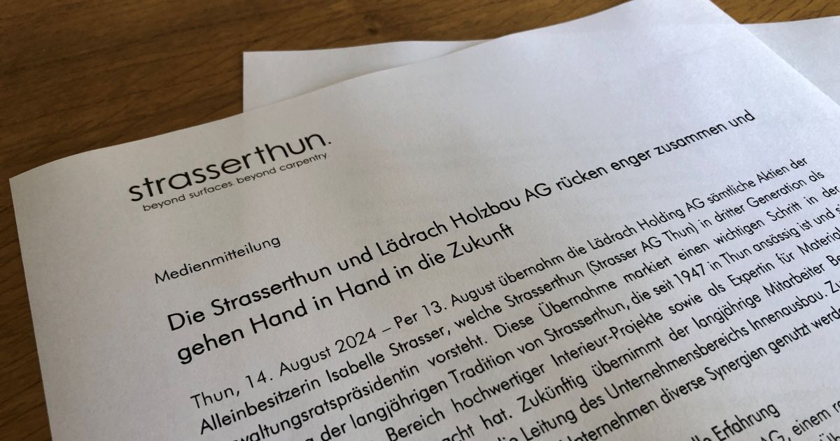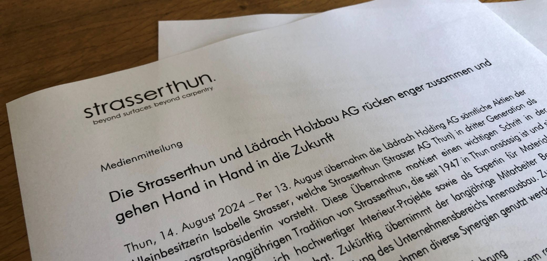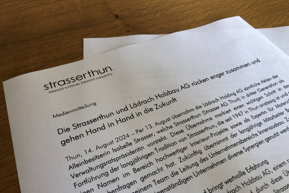 Bereits am 15. Mai teilte Isabelle Strasser mit, dass der langjährige CEO Marcel Schwander das Unternehmen verlassen hatte. Gemäss Medienmitteilung markiert die jetzige Übernahme einen wichtigen Schritt für die Zukunft von Strasserthun. Das Unternehmen hat sich im Bereich hochwertiger Projekte sowie einzigartiger Materialien und Oberflächen positioniert.