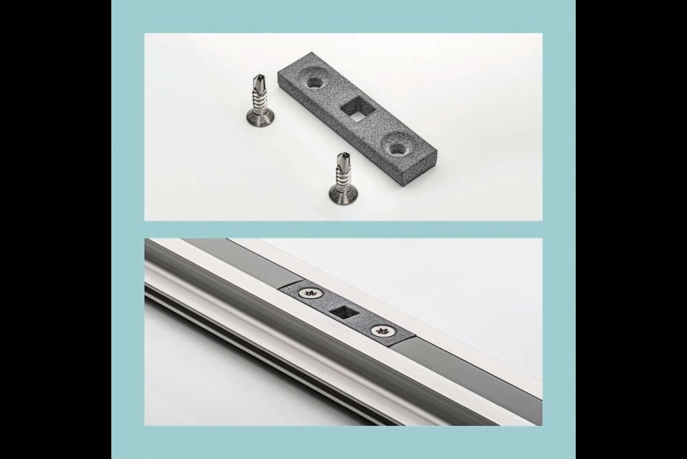 Für die Thermoschwellen «173», «184» und «187» für doppelflügelige Türen bietet Hebgo jetzt die passenden Treibriegeleinsätze an. Diese sind aus einem strapazierfähigen Kunststoff gefertigt, und es gibt sie in zwei Ausführungen: für Vierkant-Treibriegel mit 8 mm Stärke und für Rund-Treibriegel mit 10 mm Stärke. Im Set enthalten sind selbsttreibende Bohrschrauben aus Chromstahl für eine schnelle Montage. An der Thermoschwelle muss lediglich die Deckleiste im Bereich des Einsatzes unterbrochen werden.