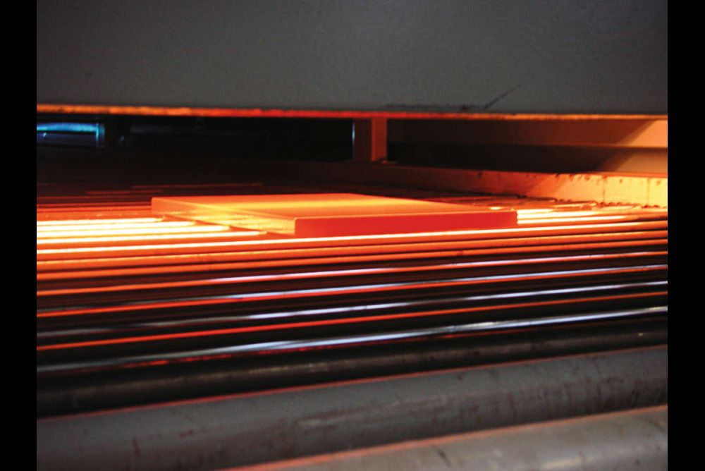 Ein grosser Vorteil der gegenüber UV-Licht etwas langwelligeren Strahlungsarten ist, dass diese in der Praxis für viele Lackprodukte, von farbigen Beschichtungen bis hin zu Beizen, funktionieren. Und die Anlagen dafür sind bei Weitem nicht so kapitalintensiv. «Der Einfluss auf die Trocknung bei wasserbasierenden Systemen ist grundsätzlich begrenzt. Trotzdem sind sie gegenüber Lösemittelsystemen in Bezug auf die Trocknung wettbewerbsfähig. Das liegt zum einen an höheren Festkörperanteilen und an der Vielzahl einsetzbarer Trocknungsmöglichkeiten. Gerade bei den wässrigen Systemen werden gute Erfahrungen mit der Infrarottrocknung gemacht», so Wollersen.