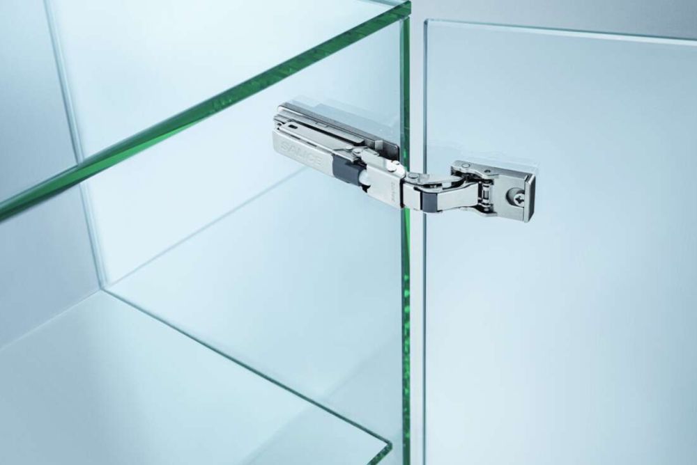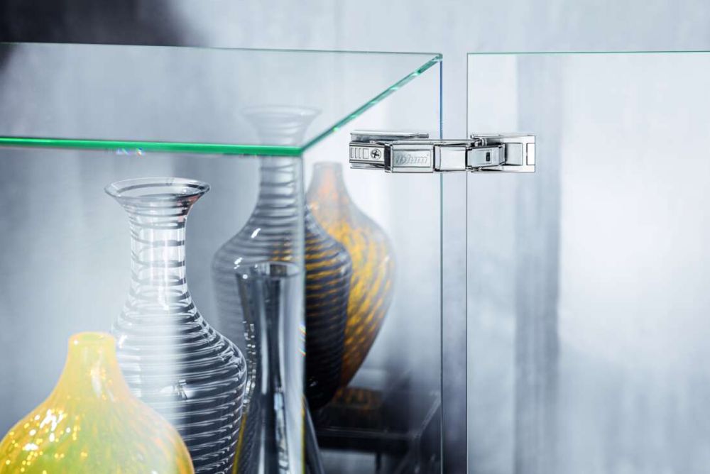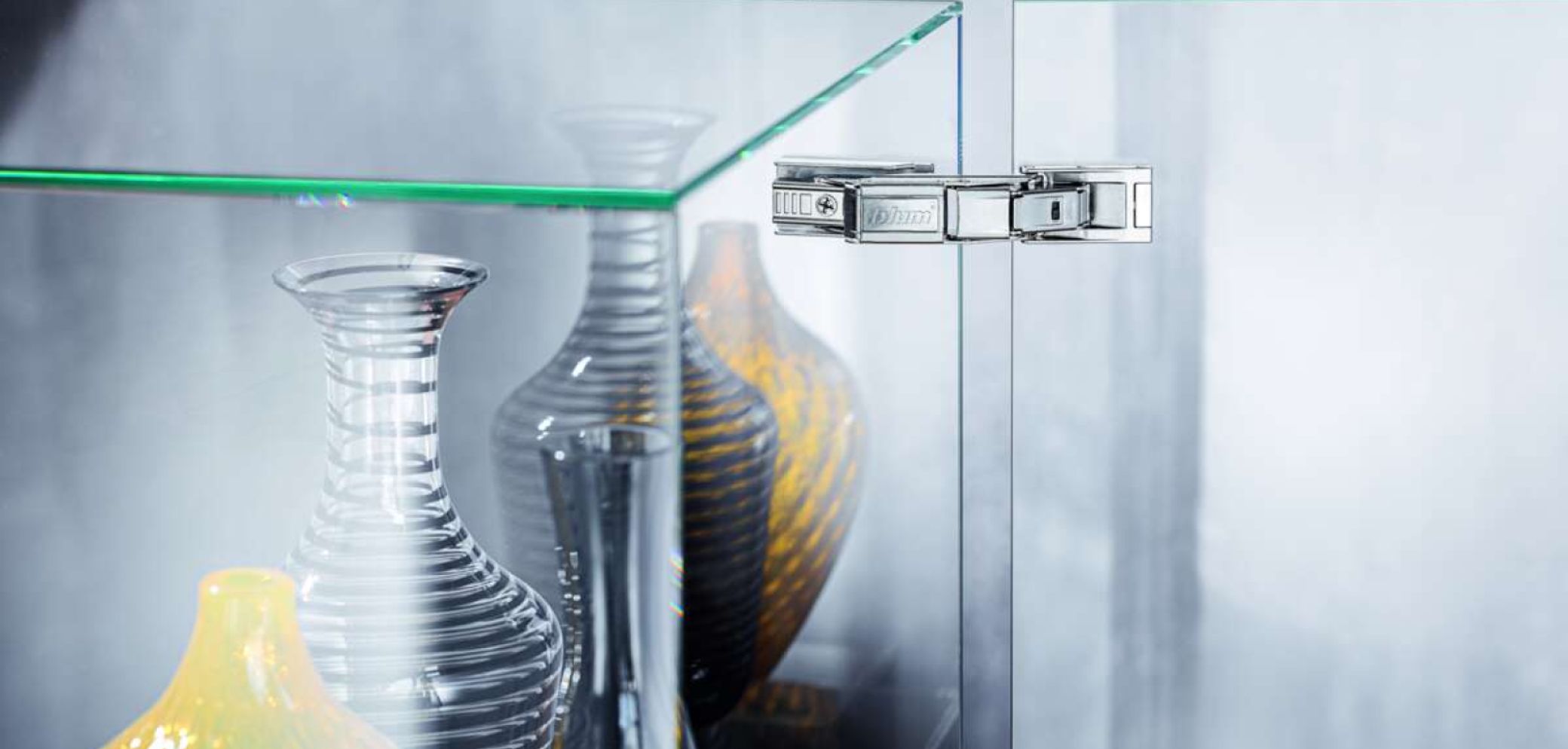 Nicht wenige Hersteller von Beschlägen geben dem Schreiner keine besonderen Angaben für das Verkleben von Beschlägen auf Glas mit an die Hand. Bei Möbelscharnieren etwa kommen dabei auch wenigstens 2-K-Acrylatklebstoffe und der UV-Kleber in Betracht. «Da es eine Vielzahl von Klebstoffen gibt, können wir keine genaueren Aussagen über den Halt machen und keine Garantie für jeden einzelnen Klebstoff übernehmen», erklärt Lukas Lässer, zuständig für den Verkauf bei Blum in Österreich. Die gängige Methode sei, die Verklebung durch einen Glasverarbeiter vornehmen zu lassen. Für Schreiner, die selbst verkleben, bietet das Unternehmen eine Stangenlehre für die Scharniere, mit deren Hilfe die Positionierung auf dem Glas einfacher zu bewerkstelligen ist.
