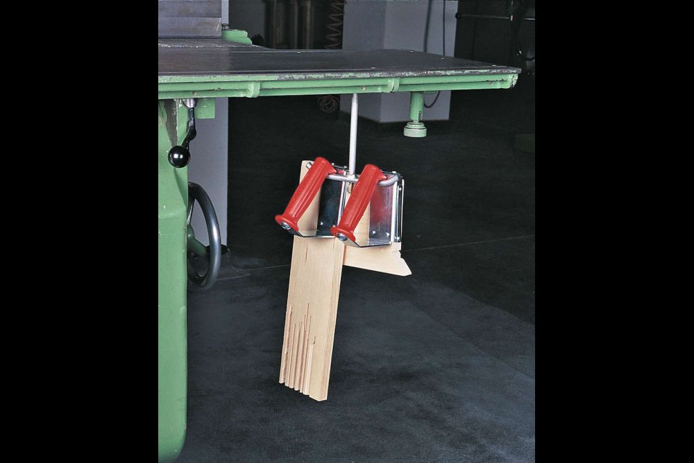 Die meisten Maschinenhersteller bieten, wenn überhaupt, nur noch etwas unpraktische Splitterholzlösungen an. Dabei wird vor allem nicht berücksichtigt, dass man dieses Holz auch tatsächlich anschneiden können sollte und die Dicke nur wenig über dem zu bearbeitenden Werkstück liegen darf.