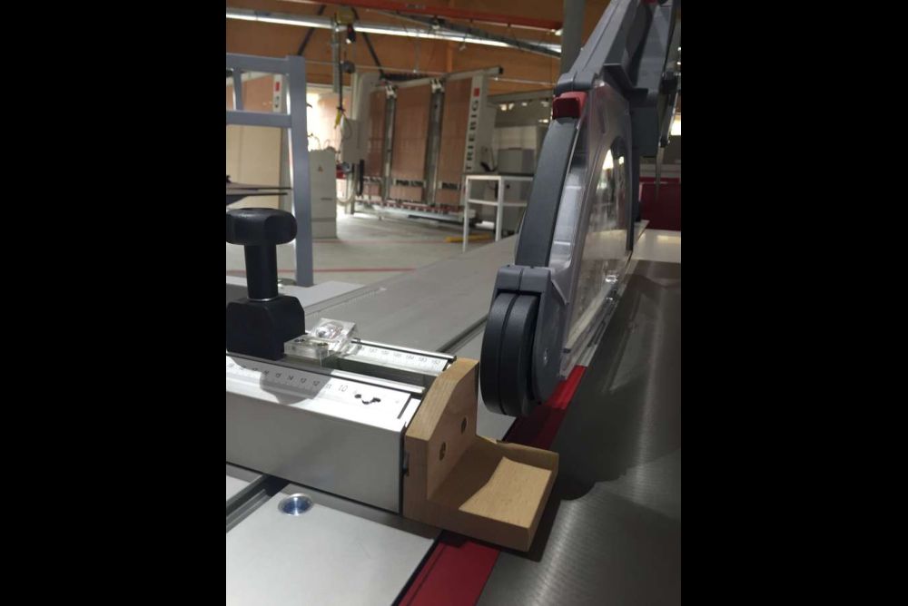 Es gibt aber auch Produktionsmethoden in anderen Regionen der Welt, die im Gegensatz zu hiesigen Vorgehensweisen stehen. Das Anschlagslineal für Querschnitte an modernen Tischfräsen wird in den meisten Ländern auf der gegenüberliegenden Auslegerseite vom Schiebetisch benutzt. Der Grund liegt beim Zuschneiden von Platten, die dann vorne auf dem Tischausleger aufliegen und hinten vom Maschinisten gehalten werden. Der schiebt das Werkstück an das Lineal und hält auf seiner Seite ein Abfallstück als Splitterholz gegen die Kante. Der gegen dieses Holz laufende Schnittdruck kann somit aber zu einer kleinen Lücke im heiklen Moment führen. Zudem ist es unmöglich, effizient auf Riss zu arbeiten. Dazu braucht es eine feststehende Schnittkante des Splitterholzes, auf den der Riss direkt ausgerichtet wird, somit keinerlei Einstellzeit benötigt und äusserst genau geschnitten werden kann.