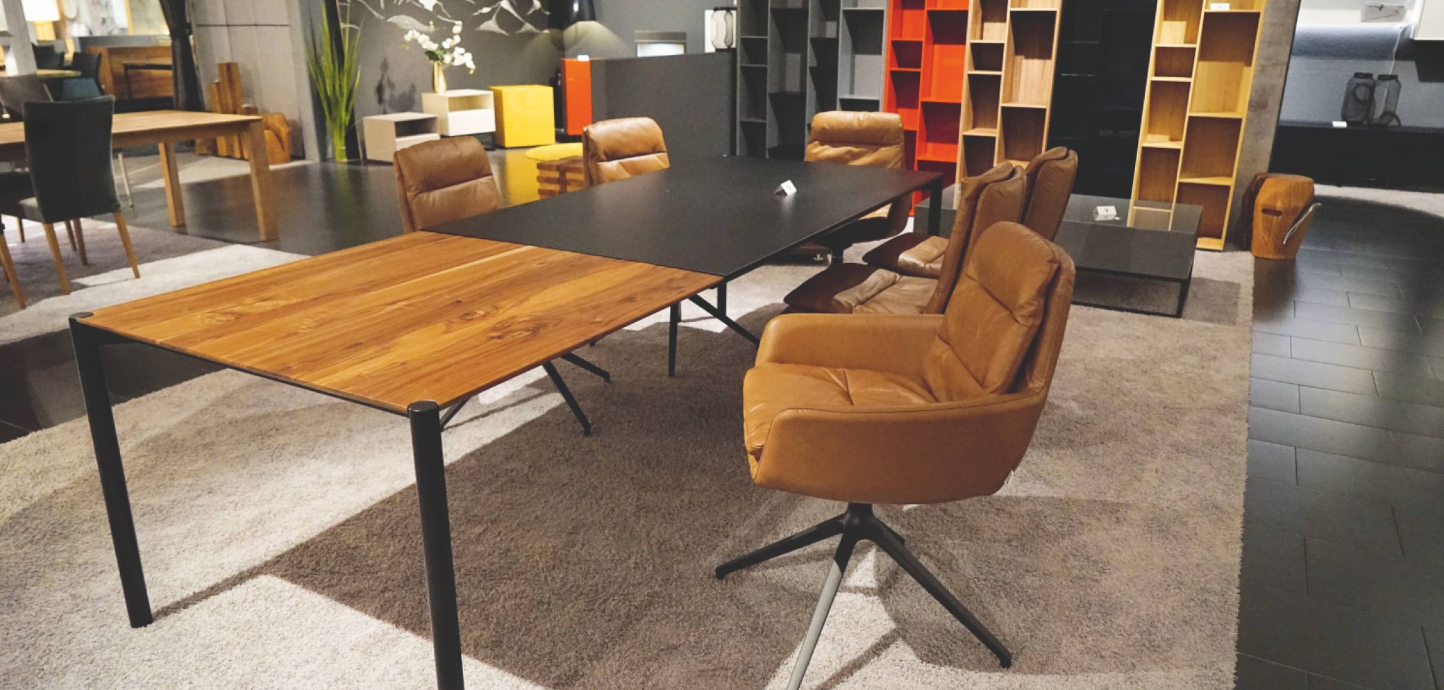 Bei Lüönd gab es einen besonderen Tischfuss, komfortables Sitzen und die umfassende Wohnlinie «Format3». Bild: Andreas Brinkmann