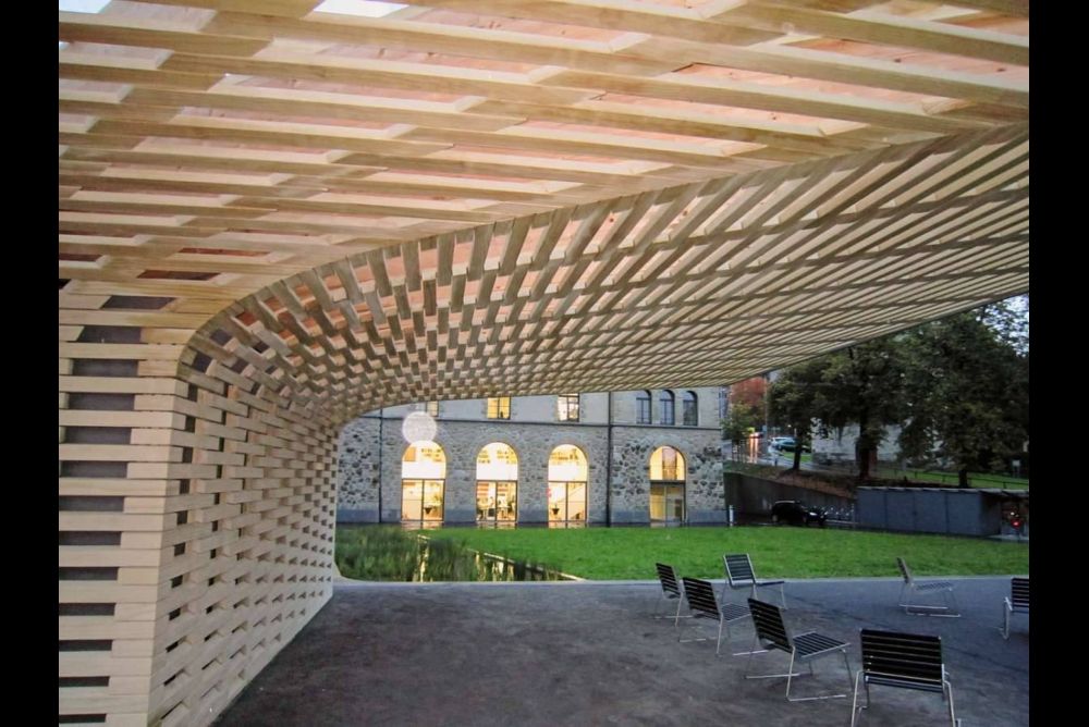 Abplanalp bezeichnet die jüngere Entwicklung der Verbindungstechnik schlicht als «unglaublich gut». Und er muss es wissen. Denn die Neue Holzbau AG ist bei vielen konstruktiv und ästhetisch anspruchsvollen Holzbauten der Schweiz mit von der Partie. So zum Beispiel auch bei der Tribüne Kulm Hotel in St. Moritz GR oder beim Holzpavillon im Zuger Stadtgarten.