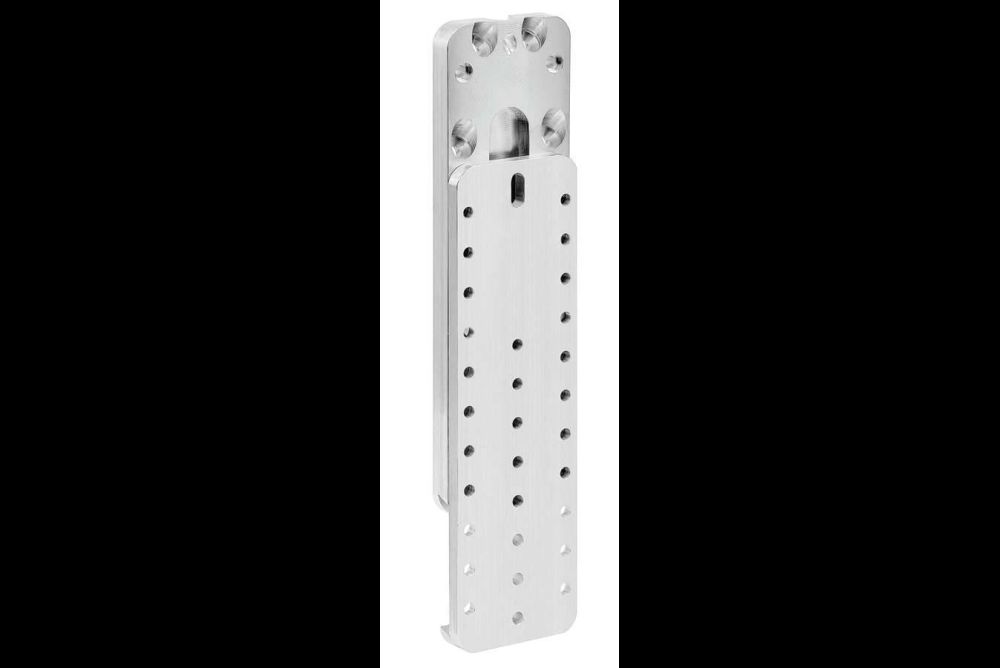 Beim SST-Passverbinder des Typs ETB aus Aluminium handelt es sich um einen besonders dünnen Beschlag. Dieser kommt in allen fünf erhältlichen Grössen mit 10 mm Stärke aus. Damit lässt sich der Verbinder auch gut ohne Ausfräsungen verwenden. Die kleinste Variante mit der Abmessung von 90 × 60 mm bringt es auf 9,6 kN Tragfähigkeit in Nadelholz. Der grösste Bruder auf 29,5 kN bei 230 mm Höhe und schlanken 75 mm Breite.