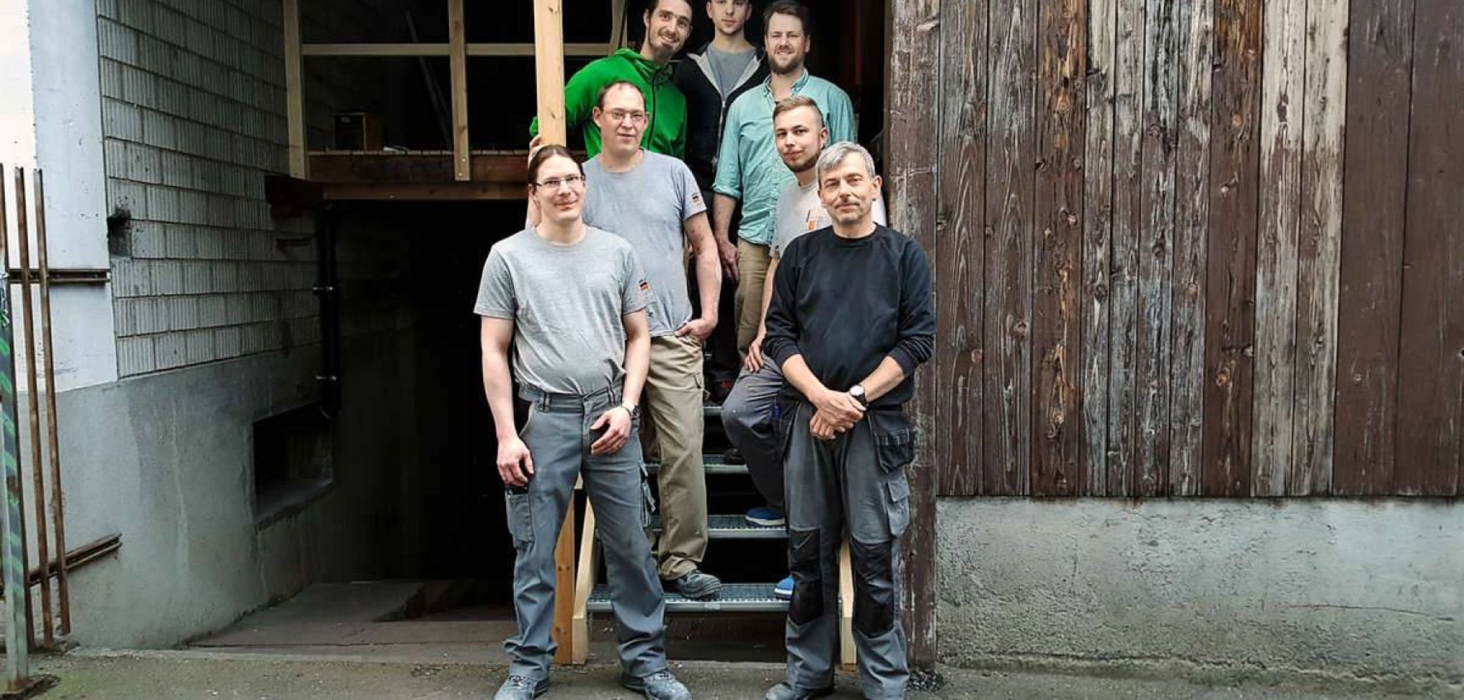 Das kleine Team von Holz-Art mit dem Lernenden Dominic dal Ponte (ganz hinten). Bild: Holz-Art GmbH
