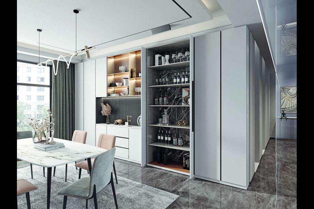 Der Rotary von OPK ist ein Dreh- und Einschiebebeschlag, mit dem sich platzsparende Möbel mit elegant versteckten Türen realisieren lassen. Beim Öffnen werden die Möbeltüren im 90-Grad-Winkel in eine Parktasche im Möbel geschoben. Dort verschwinden sie fast vollständig. Damit wird der gesamte Innenbereich des Möbels auf einmal zugänglich, was besonders bei Küchenzeilen oder grossen Bildschirmen wichtig ist. Das Produkt kann Türen mit einer Breite von 420 bis 600 mm und einer Dicke von 18 bis 25 mm bewegen. Dabei darf die einzelne Tür zwischen 15 und 35 Kilogramm wiegen.
