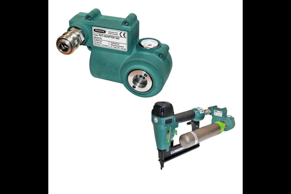 Kabellos. Mit dem PKT-Adapter 300 der Prebena Wilfried Bornemann GmbH können deren Druckluftkartuschen KT-1000 ohne weiteres Zubehör an alle Druckluftgeräte bis 10 bar angeschlossen werden.