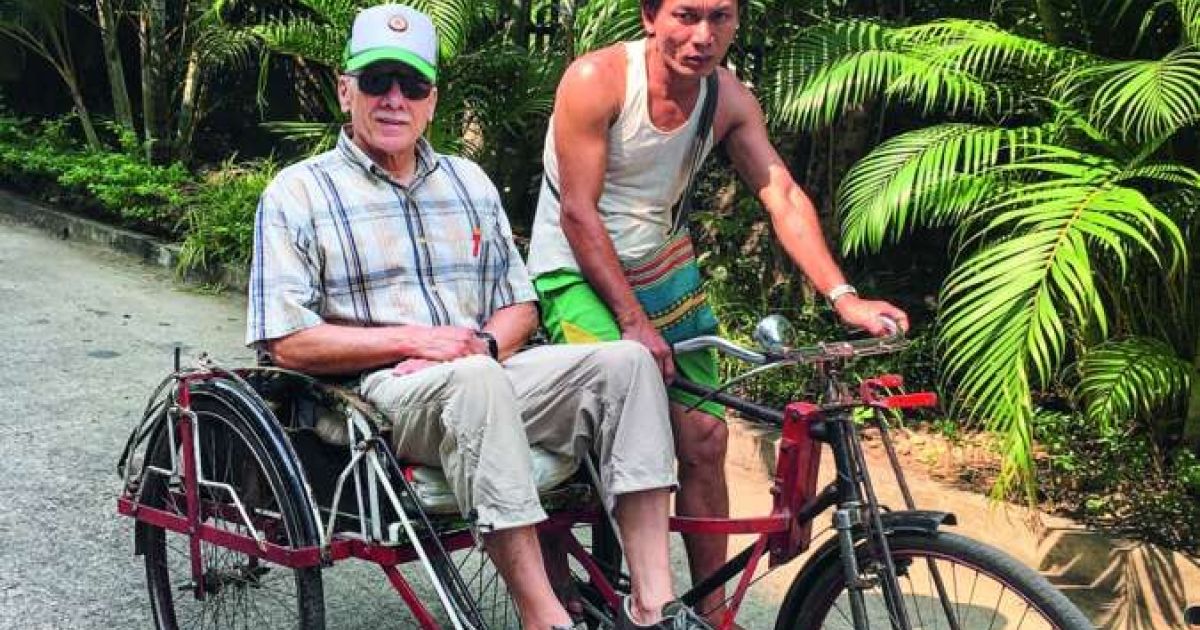 Für den Arbeitsweg in Myanmar benutzte der pensionierte Schreiner Josef Bucheli (76) die Rikscha. Bild: PD