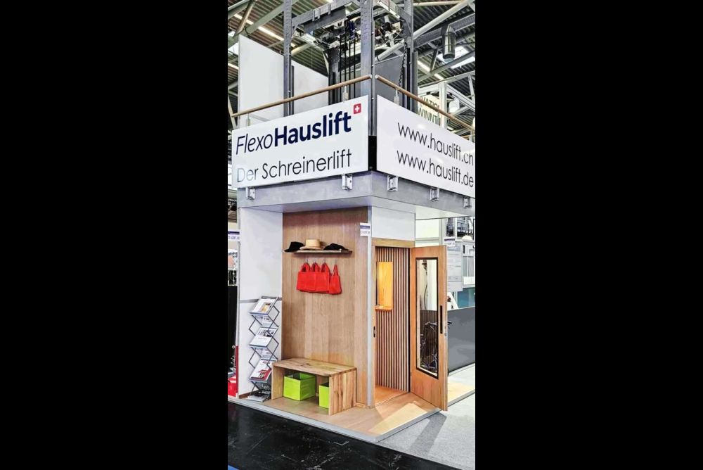 Der Hauslift wurde von der Flexomobil AG als Baukastensystem entwickelt, welches sich an ganz unterschiedliche Gegebenheiten anpassen lässt und seine Aussen- sowie Innenverkleidung von der anbietenden Schreinerei erhält. Der Lift über ein Stockwerk versteht sich als Alternative zu klassischen Sitz- oder Treppenliften. Das System ermöglicht es, dass Menschen mit eingeschränkter Mobilität bequem mit ihren Hilfsmitteln von einem Stockwerk ins nächste gelangen. Dadurch können viele Betroffene länger selbstständig in ihrem eigenen Zuhause leben. Das System soll – nach einer entsprechenden Schulung – geplant, kundengerecht situativ gestaltet und eingebaut werden können. Der Hauslift passt beispielsweise in ein Treppenauge oder eine Raumnische und kann dem vorhandenen Innenausbau auf jedem Stockwerk angepasst werden. Das mit Rasterlöchern versehene Stahlgestell lässt sich auf die gewünschten Masse zusammenschrauben und mit der Hebemechanik sowie der Steuerung versehen. Der Lift bietet auch bei kleinen Abmessungen genug Platz für eine Person mit Rollator oder auch Standard-Rollstuhl.