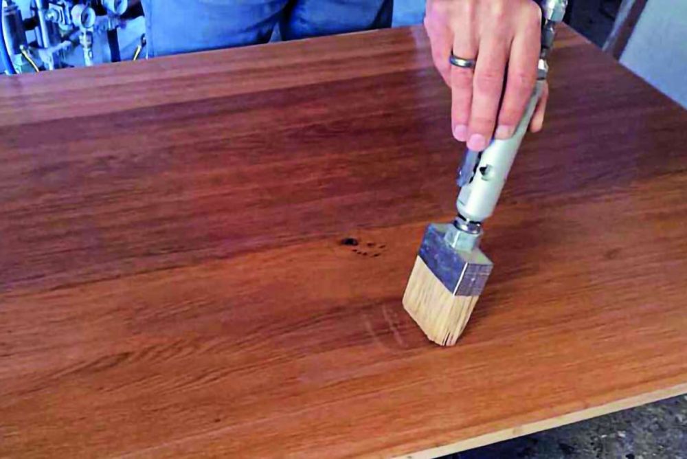 Zum Ölen von Holzoberflächen bietet die B & M GmbH mit Borsti Airless Multioiler einen innengespeisten Spezialpinsel an. Dieser kombiniert die Vorteile des Streichauftrages ohne Spritznebel mit den Vorteilen eines kontinuierlich fördernden Airless-Gerätes. Das ist besonders für die rationelle und professionelle Verarbeitung auf grösseren Flächen in Innenräumen von Vorteil.