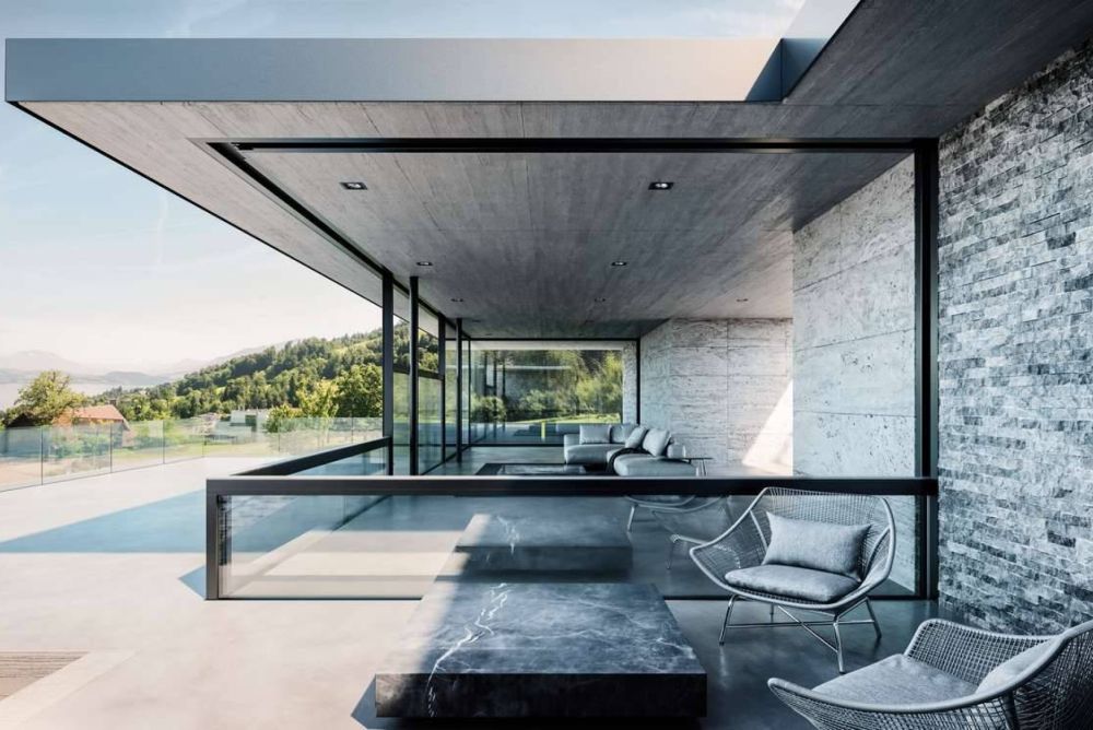 Mit der neuen Senkfront erweitert Air-Lux seine Produktpalette um eine neue Öffnungsfunktion. Die ganze Breite der Senkfront lässt sich öffnen, und das gesamte Fenster versinkt im Boden. Der Vorteil gegenüber einem Schiebeelement: Es ist kein Festelement nötig, vor das der Schieber geschoben werden muss. Auch die neuen Senkfronten überzeugen durch das Luftdichtungssystem von Air-Lux. Die umlaufenden, aufblasbaren Ringdichtungen passen sich dem beweglichen Flügelelement an und verschliessen den Zwischenraum zwischen Flügel und Festteil. Damit ist eine hundertprozentige Dichtheit gegen Schlagregen, Wind und Lärm garantiert. Je grösser eine Senkfront reali- siert werden kann, desto eindrücklicher ist der Effekt im geöffneten Zustand.