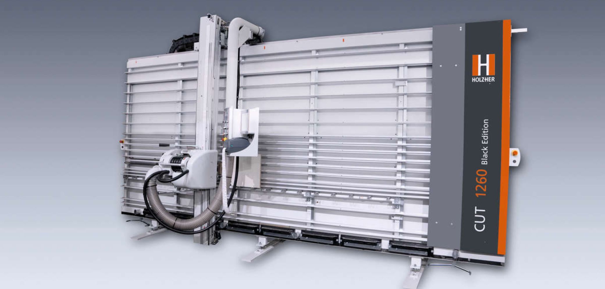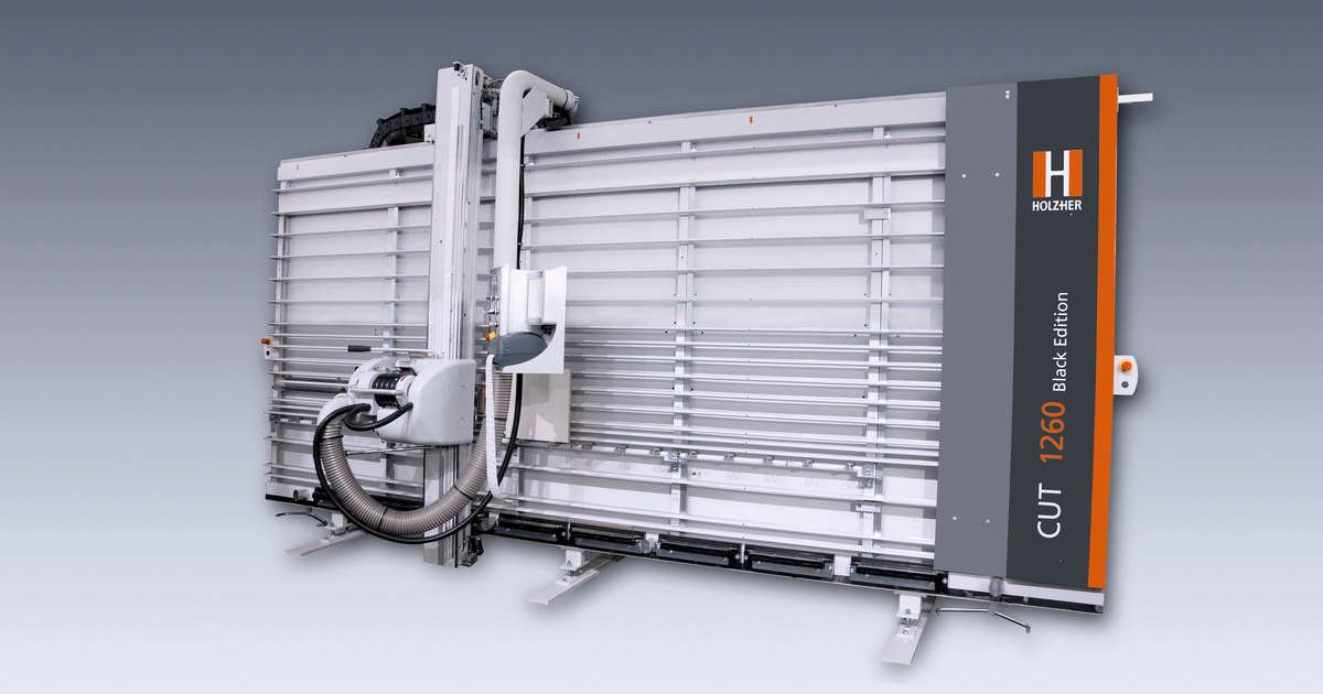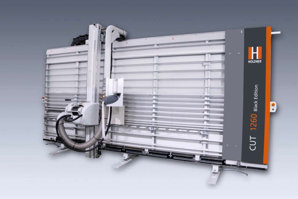 Die vertikalen Plattensägen von Holz-Her vereinen bewährte Technik aus über 50 Jahren Erfahrung. Mit einer Aufstellfläche ab 5 m² ist die vertikale Plattenkreissäge in dieser Disziplin unschlagbar und spart die Kosten für zusätzlichen Platzbedarf. Die «Cut 1255 manuell» und «Cut 1260» in Automatikausführung gibt es als Sondermodell «Black Edition» in den Schnittlängen 4300 und 5300 mm. Die Schnitthöhen liegen je nach Bedarf und Platzverhältnissen bei 1900 mm beziehungsweise 2200 mm und decken damit alle gängigen Plattenmasse ab. Die Schnitttiefe beträgt dabei bis zu 60 mm. Die Einstellung des Horizontalschnitts erfolgt über eine serienmässig eingebaute Digitalanzeige mit elektrischer Feineinstellung. Das Sägeaggregat wird dabei per Knopfdruck automatisch gerastet, was laut Hersteller einmalig in dieser Sägenklasse ist. Ein pneumatischer Verschieberost verhindert, dass die Auflageleisten zersägt werden, und verrückt den Auflagerost bei Bedarf automatisch. Das Zubehörpaket umfasst das Vorritzsystem «Super Cut», Längsanschläge – auf Wunsch mit Feineinstellungen –, stufenlose Drehzahlregelung und vieles mehr.