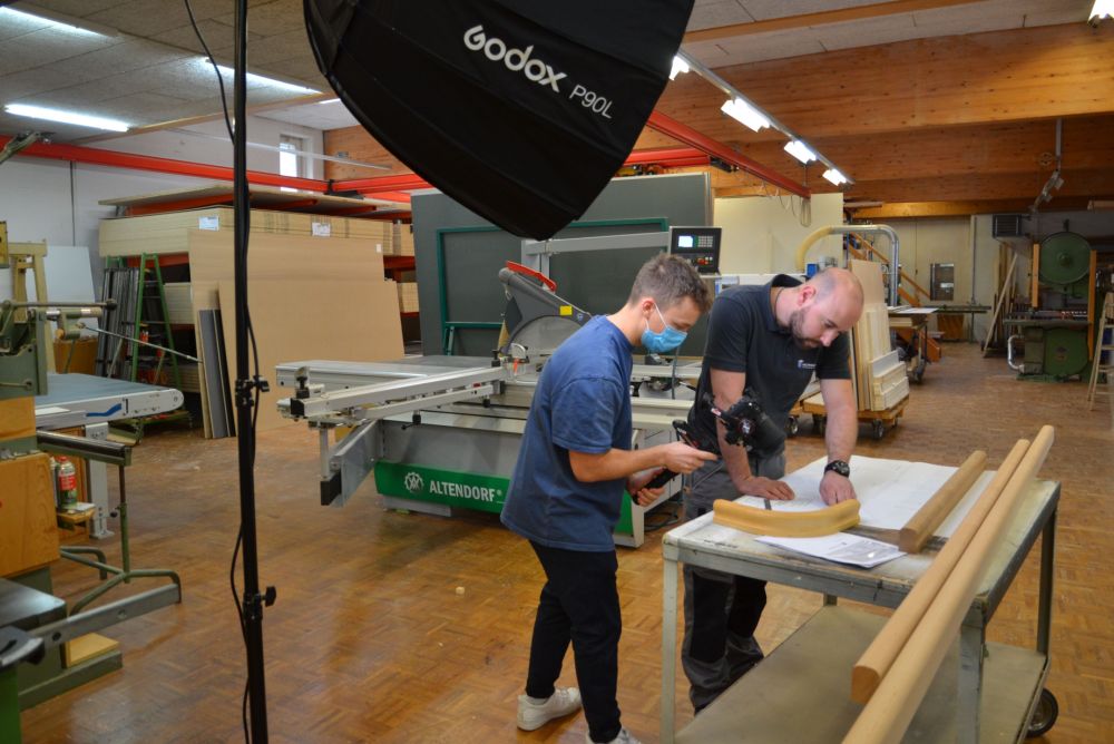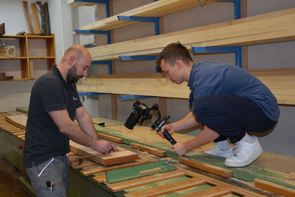 Der Imagefilm ist auch bei Baltensperger bereits online aufgeschaltet. Inhaber Thomas Baltensperger sieht ihn «als schöne Ergänzung der Website und als kleine Öffnung des Betriebes». Der Film spreche die Kunden auf der emotionalen Ebene an und wecke Sympathien, meint er. Mit Dominic Marti und Benjamin Dütschler konnte der VSSM zwei junge Filmer gewinnen, die sich vor Kurzem mit der Firma Visualconcept.Zurich selbstständig gemacht haben. Für Marti haben diese Filmarbeiten eine besondere Bedeutung, denn vor drei Jahren hat er selber eine Lehre als Schreiner abgeschlossen – bei Baltensperger. Das Projekt mache ihm deshalb besonders viel Freude und es falle ihm leicht, Inputs zu geben. «Wir haben eine beratende Funktion und geben Tipps, wenn dies gewünscht ist», sagt Marti weiter.