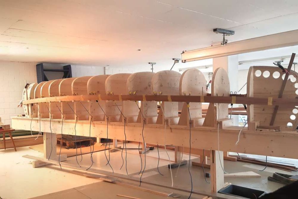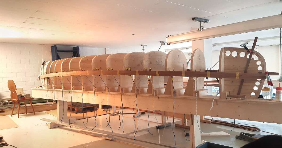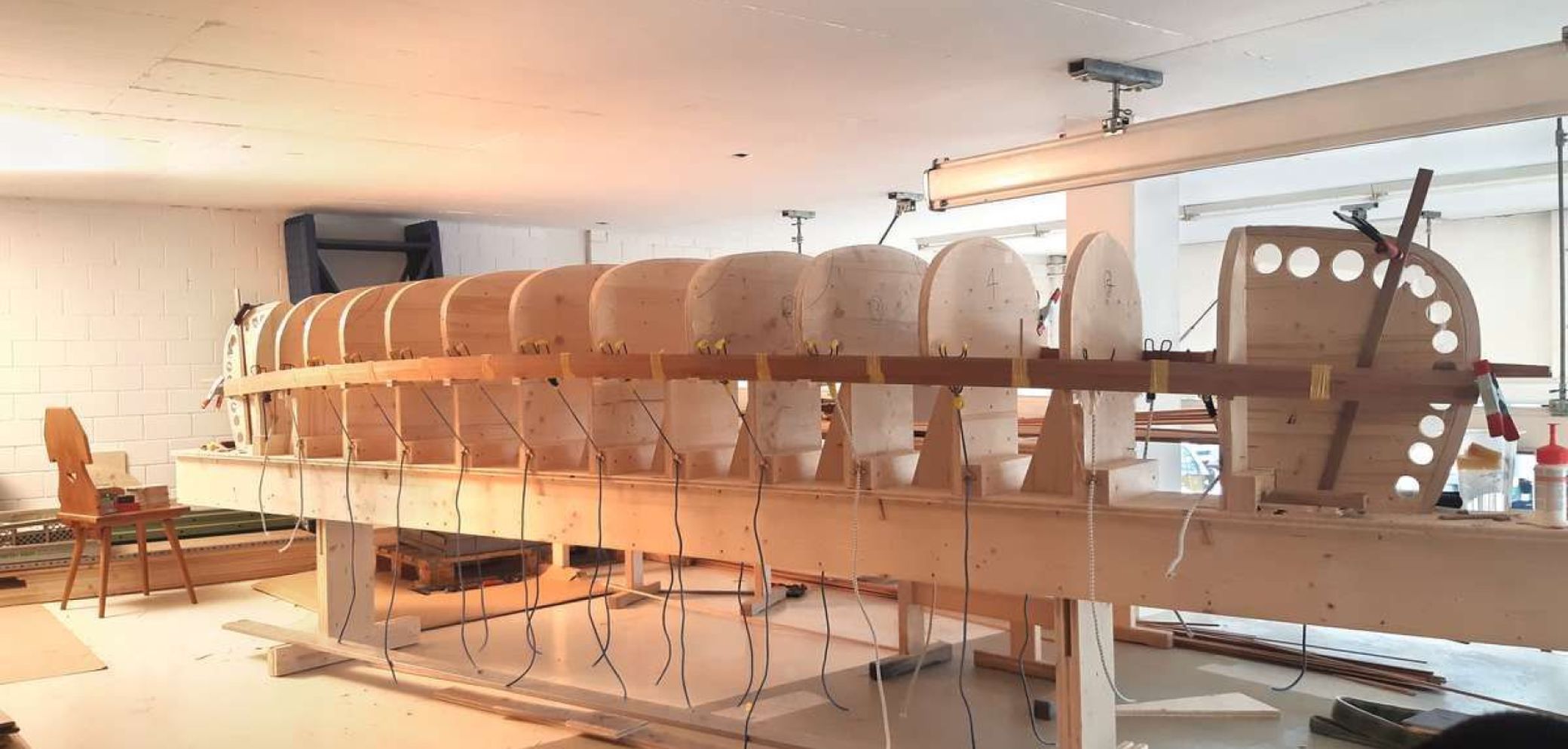 Das Negativ, das dem Rumpf die Form gibt, sieht aus wie ein Fischskelett. Bild: Remo Selenati