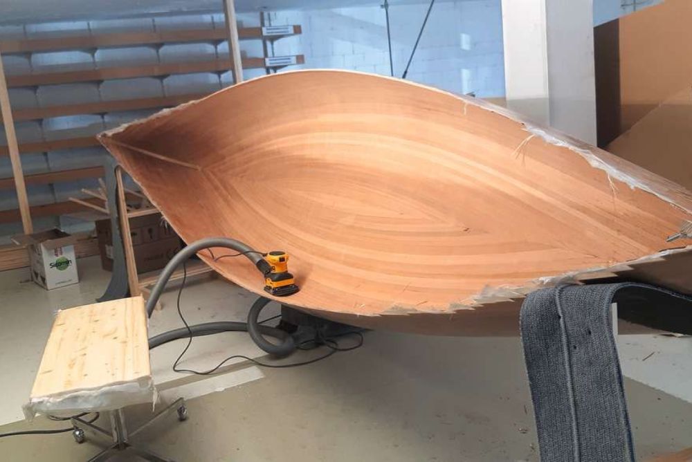 Also hat sich Remo Selenati an die Arbeit gemacht. Die Bauanleitung hat er aus dem Buch «Canoecraft» von Ted Moores. Der angehende Schreiner im vierten Lehrjahr hat für das Kanu leichtes Zedernholz verwendet. Dessen Dicke beträgt sechs Millimeter. «Innen und aussen befinden sich je noch drei Lagen Glasfasergewebe drauf. Das ist nötig für die Stabilität und die Wasserfestigkeit.» Die Laminierung der Glasfasern mit Epoxidharz sei etwas vom Schwierigsten gewesen. «Dafür, dass ich es zum ersten Mal gemacht habe, ist es aber gut geworden. Es hat einfach kleine Fehler drin.» Es heisst, man könne die Laminierung 1000 Mal machen und immer noch dazulernen. Die Teile für das Negativ, das dem Rumpf die Form gibt, hat er mit einem CNC-Bearbeitungszentrum herausgefräst.