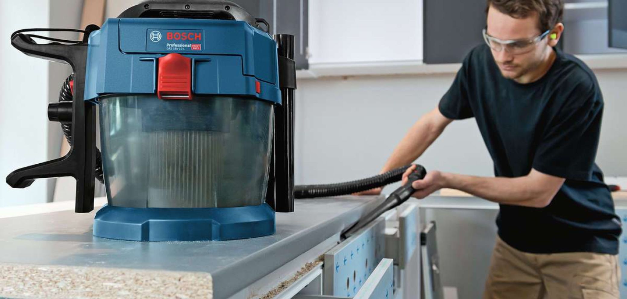 Bosch erweitert das 18-Volt-System für Profis um zwei besonders kompakte und leistungsstarke Akku-Sauger: den Nass- und Trockensauger «GAS 18V-10 L Professional» und den Trockensauger «GAS 18V-1 Professional». Beide sorgen mit ungewöhnlichem Luftstrom für effiziente Absaugung. Durch die besondere Geometrie der Sauger wird im Inneren ein Wirbel erzeugt, sodass sich der Staub langsamer am Filter absetzt. Der Filter wird geschont, und die Saugleistung bleibt länger hoch. Der «GAS 18V-10 L Professional» ist laut Hersteller der einzige Akku-Sauger im Elektrowerkzeugmarkt, der diesen Rotationsluftstrom und gleichzeitig ein Nettovolumen von sechs Litern bietet. Der «GAS 18V-1 Professional» erzeugt gleich zwei Wirbel und saugt den Staub zweistufig ab. Beide Geräte zeichnen sich ausserdem durch eine lange Laufzeit und transparente Staubbehälter aus.