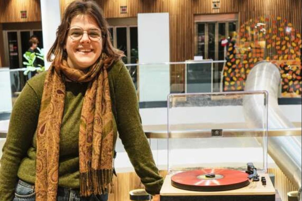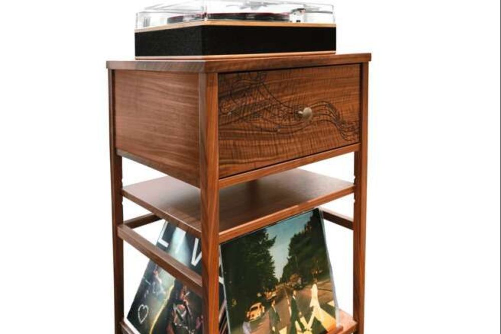Das Plattenspielermöbel hat Anna Schorno komplett aus amerikanischem Nussbaumholz gefertigt. Bild: Michi Läuchli