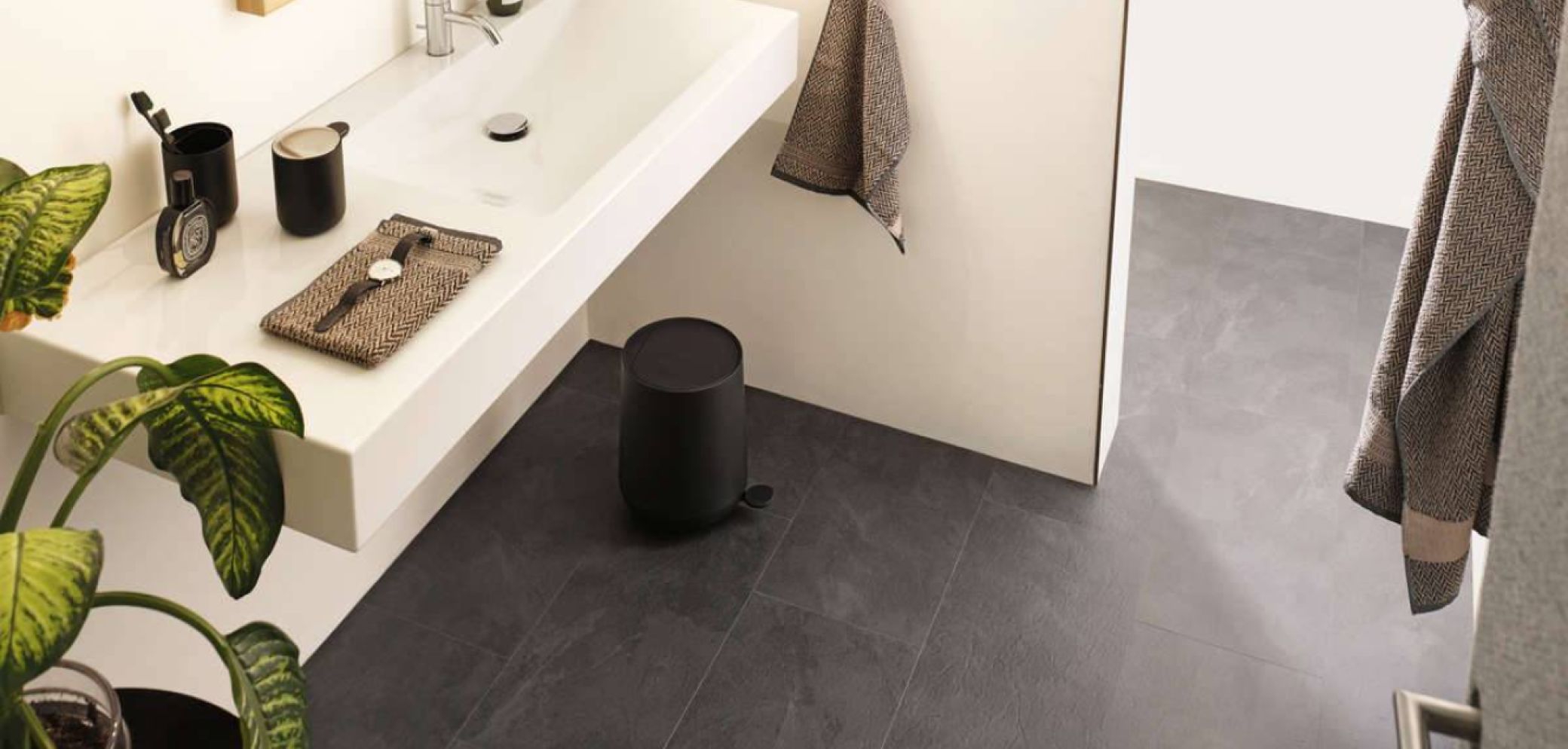 Nicht nur Küche und Wohnraum verschmelzen zunehmend miteinander, sondern auch Räume wie Schlafzimmer und Bad. Stark im Trend liegt derzeit der Werkstoff Vinyl mit seiner hohen Strapazierfähigkeit. Als einer der ersten Anbieter führt Tilo ein umfangreiches Sortiment an Vinylböden, die auch in Feuchträumen zum Einsatz kommen können. «Spa Rigid- boards» und «Pro+ Klebesheets» zeichnen sich durch Wasserfestigkeit aus und sind in 16 verschiedenen Dekoren erhältlich, die mit den bekannten Dekoren für Trockenräume identisch sind. «Spa Rigidboards» können schwimmend verlegt werden und überbrücken vorhandene Fliesen. Das neue, harte Trägermaterial weist dabei hohe Verbindungsfestigkeitswerte auf.