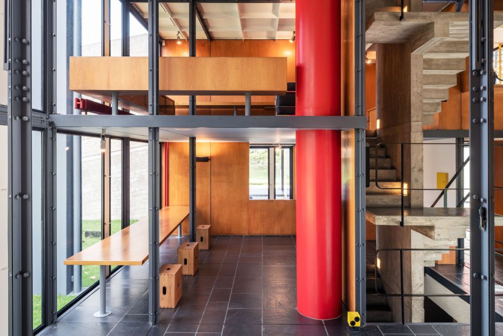Der online Spaziergang durch den zweigeschossigen Pavillon bietet eine grosse Auswahl an Bildmaterial, Plänen, Skizzen und Texten. Zudem kann man sich Audiodateien mit vielen Hintergrundinformationen anhören. Und auch die Schreiner gehen b^dabei nicht leer aus. Man erfährt auch einiges über das eichenfurnierte Mobiliar des 1967 fertiggestellten Gebäudes.