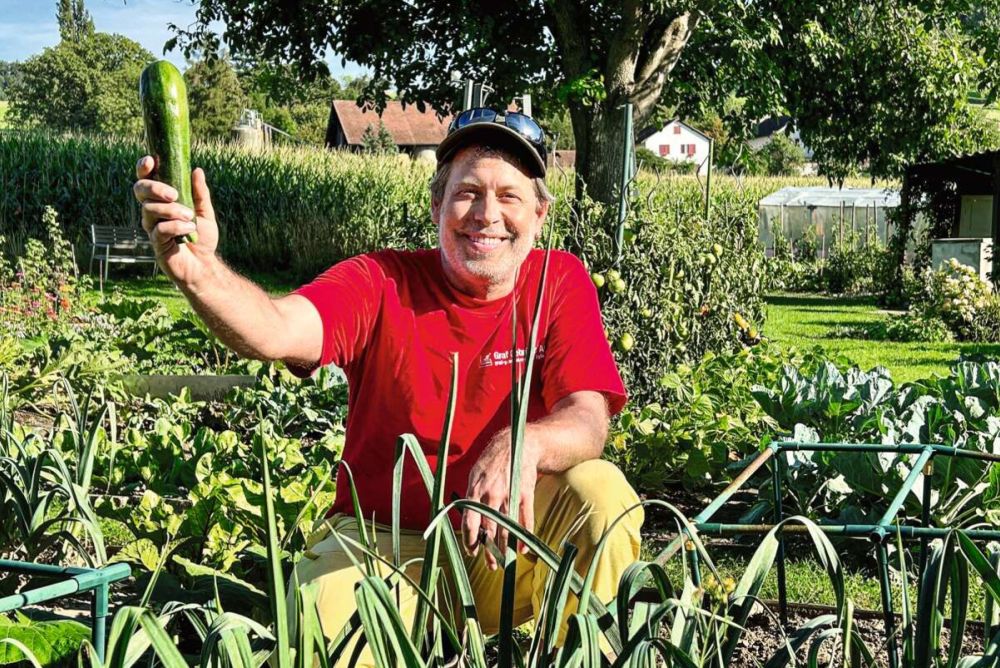 Eine eigene Zucchetti zum Znacht. Der Schreiner Reto Mathys (47) freut sich über diese Geschenke der Natur. Bild: Beatrix Bächtold