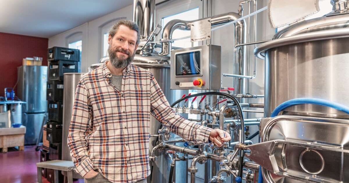 Johannes Lang (43) in seiner kleinen Bierbrauerei mitten in der Stadt Luzern. Bild: Caroline Mohnke