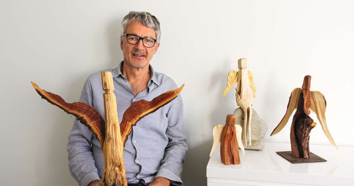Bernhard Berchtold (64) fertigt mit Leidenschaft Engel aus verschiedenen Hölzern. Bild: Christian Bärtschi