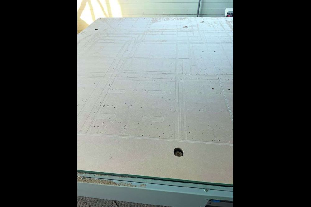 Dabei kommt normalerweise ein grossformatiger Rastertisch zum Einsatz, der mit einer sogenannten Hilfsplatte («Opferplatte») belegt wird. Bei dieser Hilfsplatte handelt es sich oft um MDF, durch die hindurch die zu bearbeitende Platte angesaugt und gehalten wird. Die Teile werden direkt aus der ganzen Platte gefräst.
