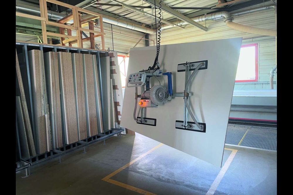 «Wir haben unser Layout aufgrund der Bearbeitungsgrösse von 6 × 2,1 Meter komplett umgestellt. Das vertikale Plattenlager haben wir beibehalten, aber umplatziert. Heute kommt ein schwenkbarer Saugkran für die Beschickung zum Einsatz. Die Nesting-Maschine verfügt über ein Auslaufband. Diese Konstellation ist ideal für unsere Ansprüche», sagt Schmutz. Der Einsatz eines Auslaufbandes ist für viele Anwender besonders zentral, denn damit wird ein wesentlicher Nachteil des Nesting-Verfahrens ausgeglichen. Die fertig verarbeitete Platte wird auf dieses Band abgeschoben, die Werkstücke entnimmt man bequem von der Stirnseite der Anlage her. Abschnitte werden zerbrochen und in einem Abfallwagen vor Ort entsorgt. Dadurch fällt das mühsame Einsammeln der Teile ringsum der Maschine weg. Die neue Fertigungstechnik bedingt also oft Anpassungen am Layout und an den Prozessen. Beides keine alltäglichen Aufgaben. Erfahrung ist wichtig und daher lohnt sich oft eine Beratung durch Maschinenlieferanten oder Spezialisten, welche die passende Lösung für den eigenen Betrieb definieren können.