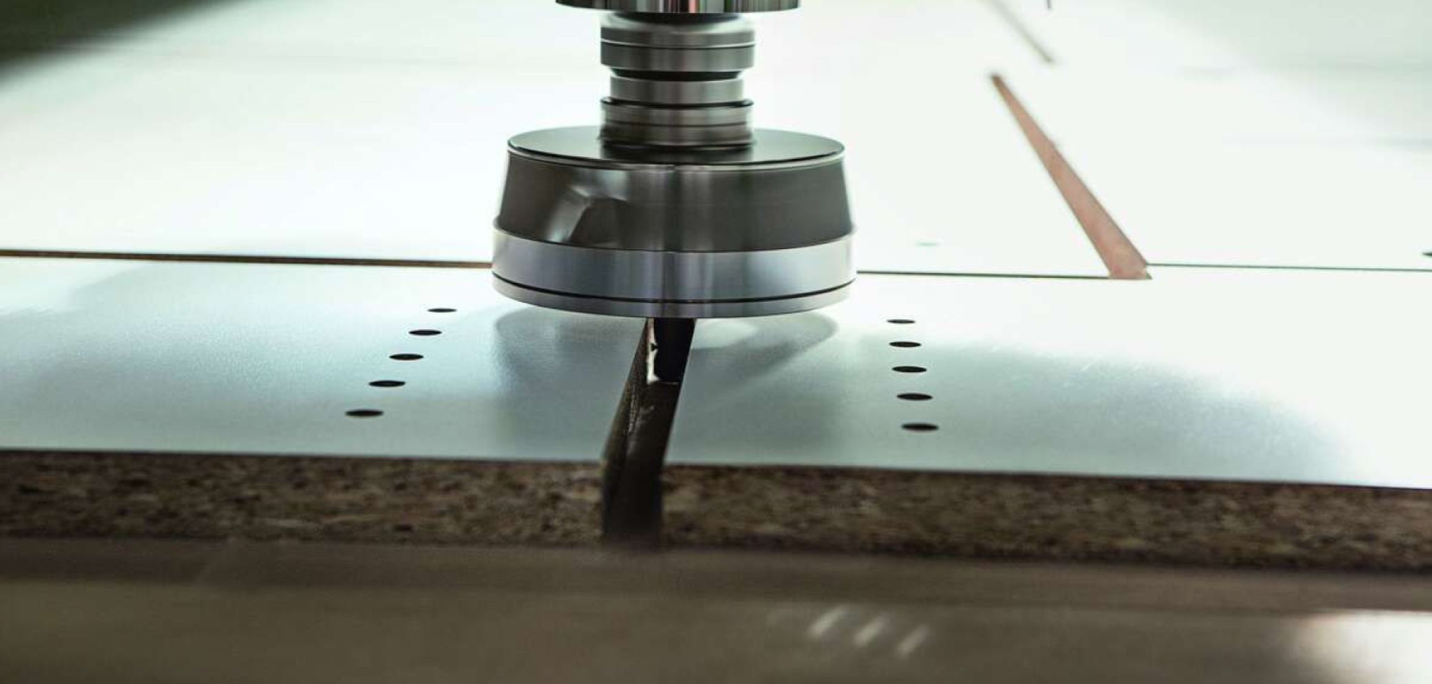 Auftrennen der Platten beim Nestin-Verfahren mit einem speziellen Fräser. Bild: Biesse Group