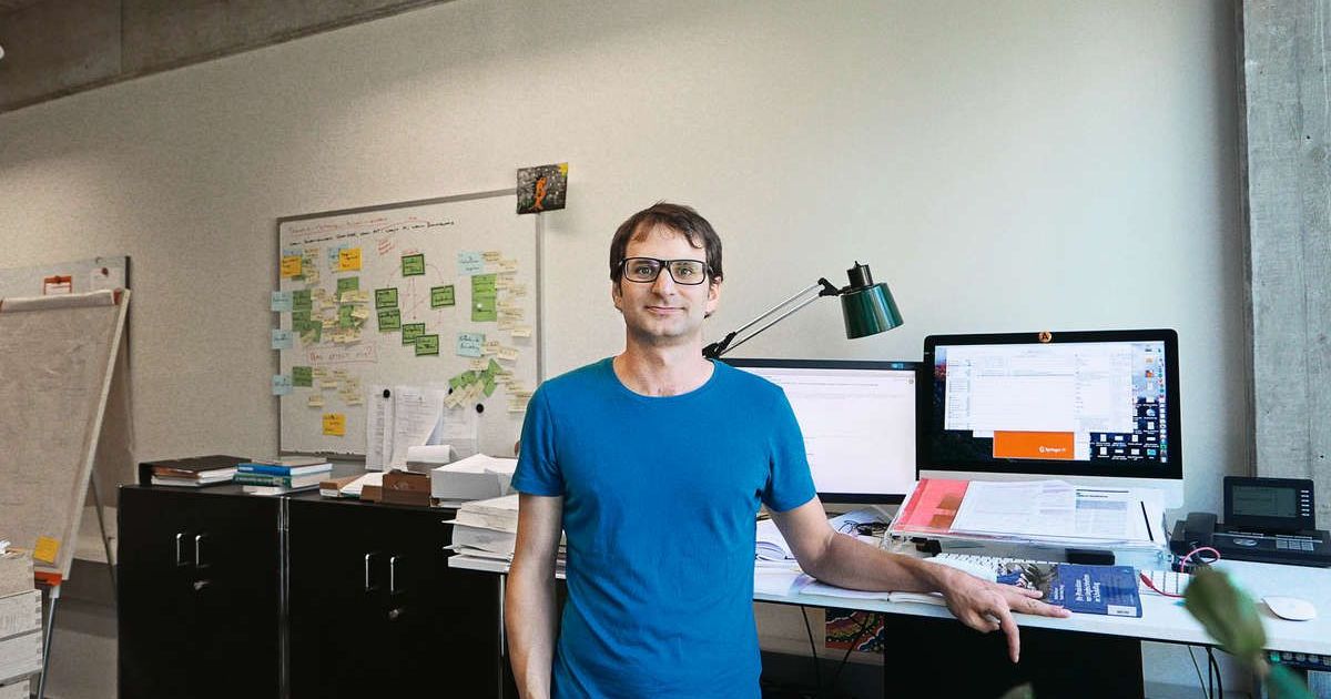 Veränderung gehört zu seinem Leben: David Labhart (35) in seinem Büro an der Universität Zürich. Bild: PD