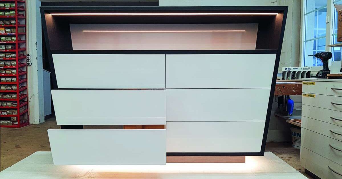 Das schräge Sideboard hat Andrea Fässler bei einem Lehrlingswettbewerb eingereicht. Bild: Andrea Fässler