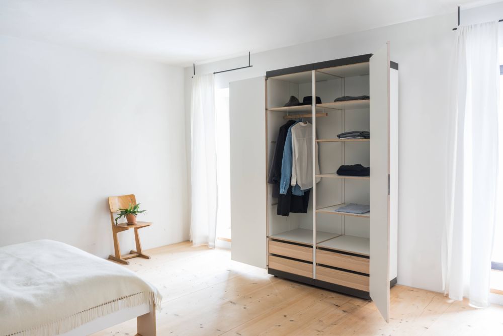 Möbel. Ein Schrank braucht nicht zwingend eine Handvoll Schrauben, um stabil und sicher das Hab und Gut zu wahren. Dies beweist der Schrankone des süddeutschen Möbeldesigners und -herstellers Nils Holger Moormann.