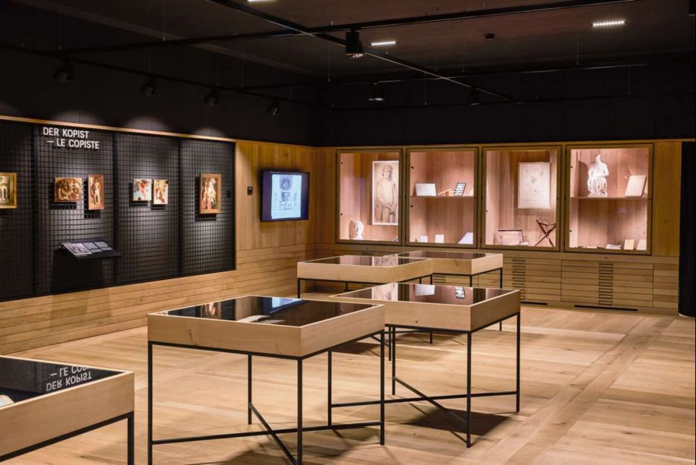 Auch bei der Schreinerei Roth AG aus Trubschachen BE sind es vor allem die Arvenholzmöbel, deren Oberflächen unbeschichtet bleiben. Gerade Bettgestelle aus dem besonderen Holz stehen hoch im Kurs, erklärt Projektleiter Matthias Kaderli. Als man den Auftrag für den neuen Pavillon des Centre Albert Anker in Ins BE bekam, war das schon etwas Besonderes gewesen. Denn die Präsentations- und Aufbewahrungsmöbel für die Arbeiten des Künstlers im zentralen Raum wurden vom Atelier Marcel Hegg in unbehandelter Eiche geplant. Auch die Wandverkleidungen und das Parkett blieben unbehandelt. Das scheint ungewöhnlich für ein Museum mit Publikumsverkehr. Doch angesichts des sensiblen Lagerguts wollte man jedes Risiko einer Belastung, etwa durch Ausdünstungen von Lösemitteln ausschliessen. Auch das Tageslicht musste zum Schutz der Gemälde draussen bleiben.