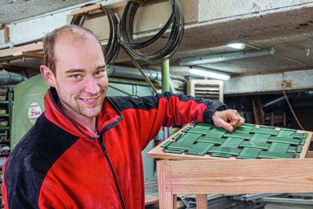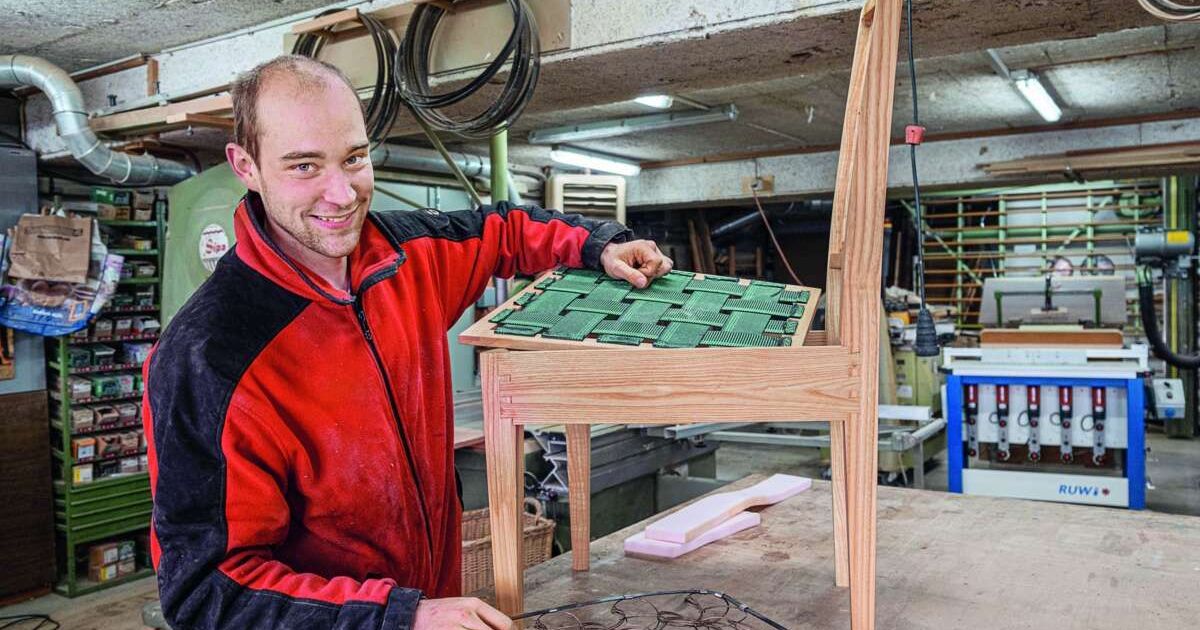 Robin Tinz (30) kennt sich aus mit den verschiedenen Holzkonstruktionen und Polsteraufbauten. Bild: Caroline Mohnke