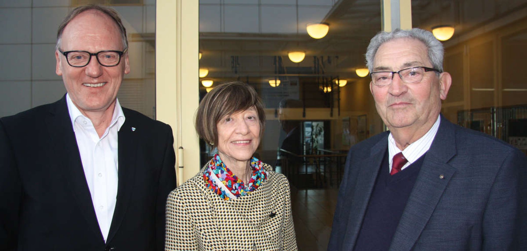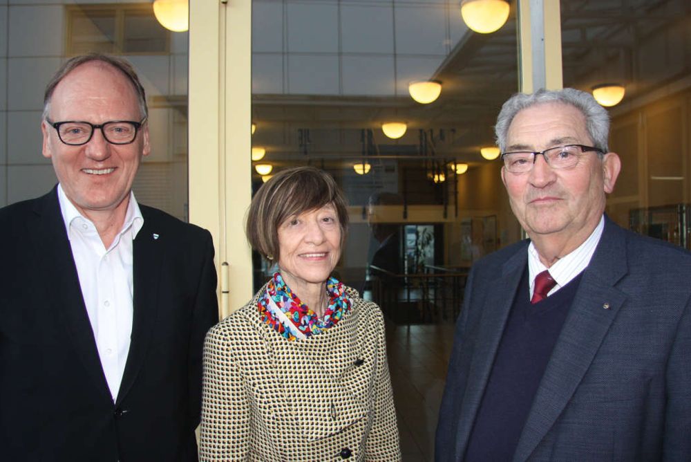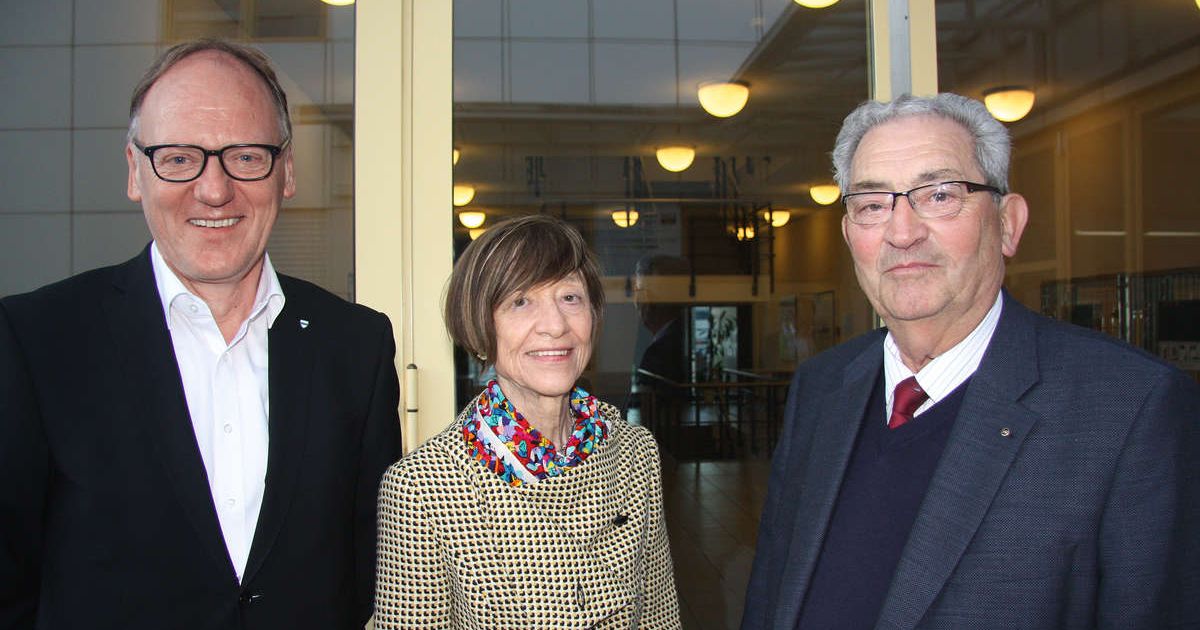 Urgesteine: Beat Wenger (links) und Fernand Devaud mit Überraschungsgast Ruth Grossenbacher. Bild: Stiftung Schreinerschule Solothurn