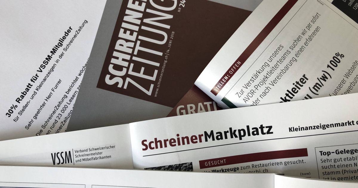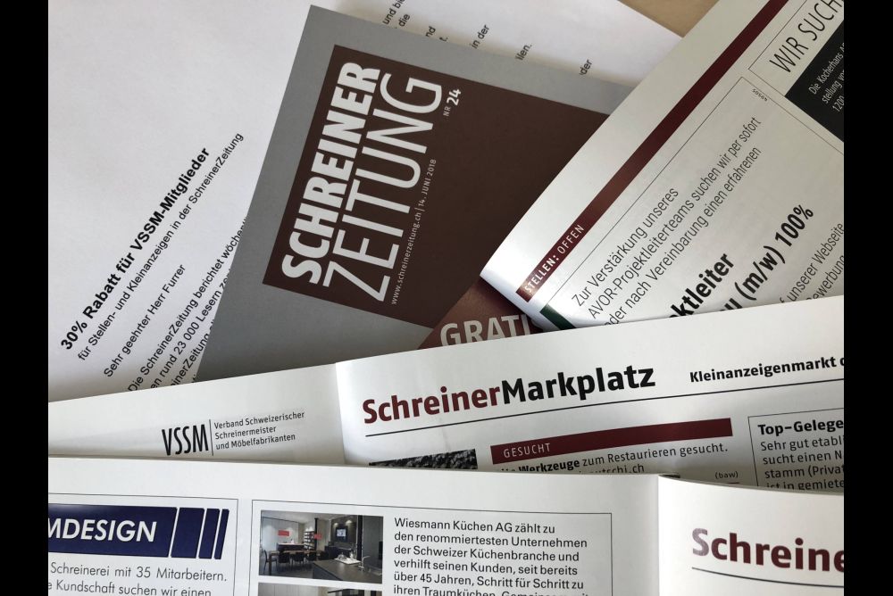Per sofort erhalten VSSM-Mitglieder auf alle Stellen- und Kleinanzeigen in der SchreinerZeitung einen Rabatt von 30 Prozent.