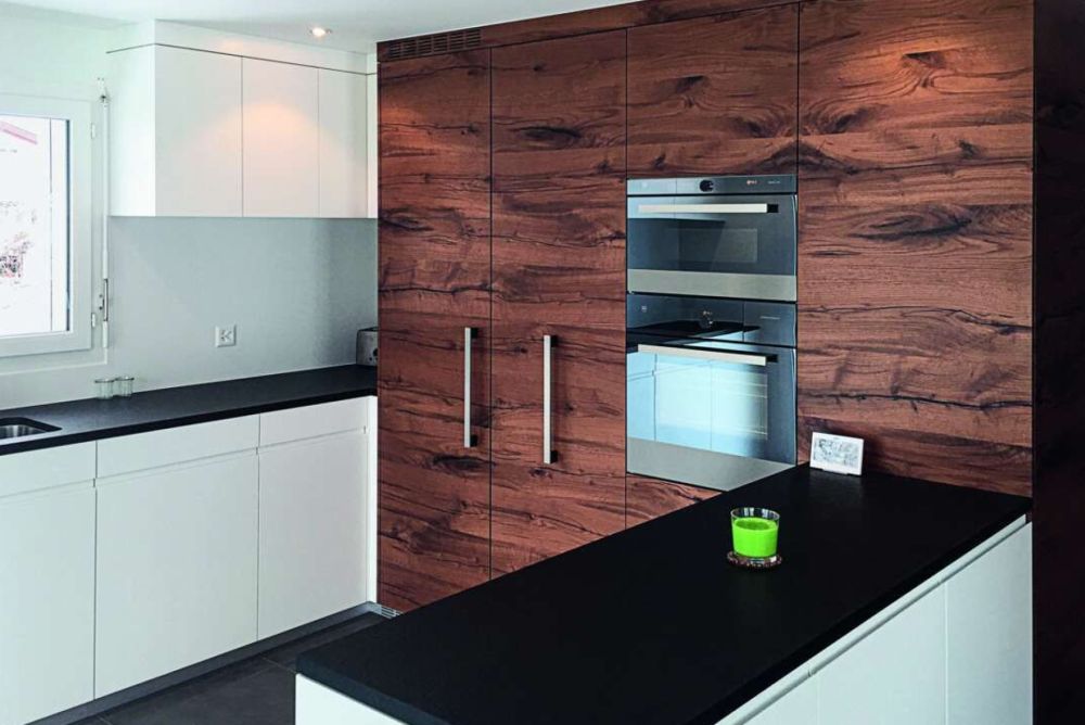 Wer, dem Trend folgend, nur die Altholzoptik und solche markanten Flächen in Projekten verwenden möchte, ist mit Imitaten sehr gut bedient. Und ja, auch die gibt es mit stark strukturierten, beispielsweise mit der Axt behauenen Massivholzflächen. Auch das verlangt nach einem ähnlichen Können und Vorgehen wie bei Altholz. Die Anfrage beim Holzwerkstoffhändler und die Beratung durch einen Fachmann zeigen schnell, was sich für welchen Fall eignet. Es gibt Produkte, die von vielen Schreinereien gut und sicher verarbeitet werden können.