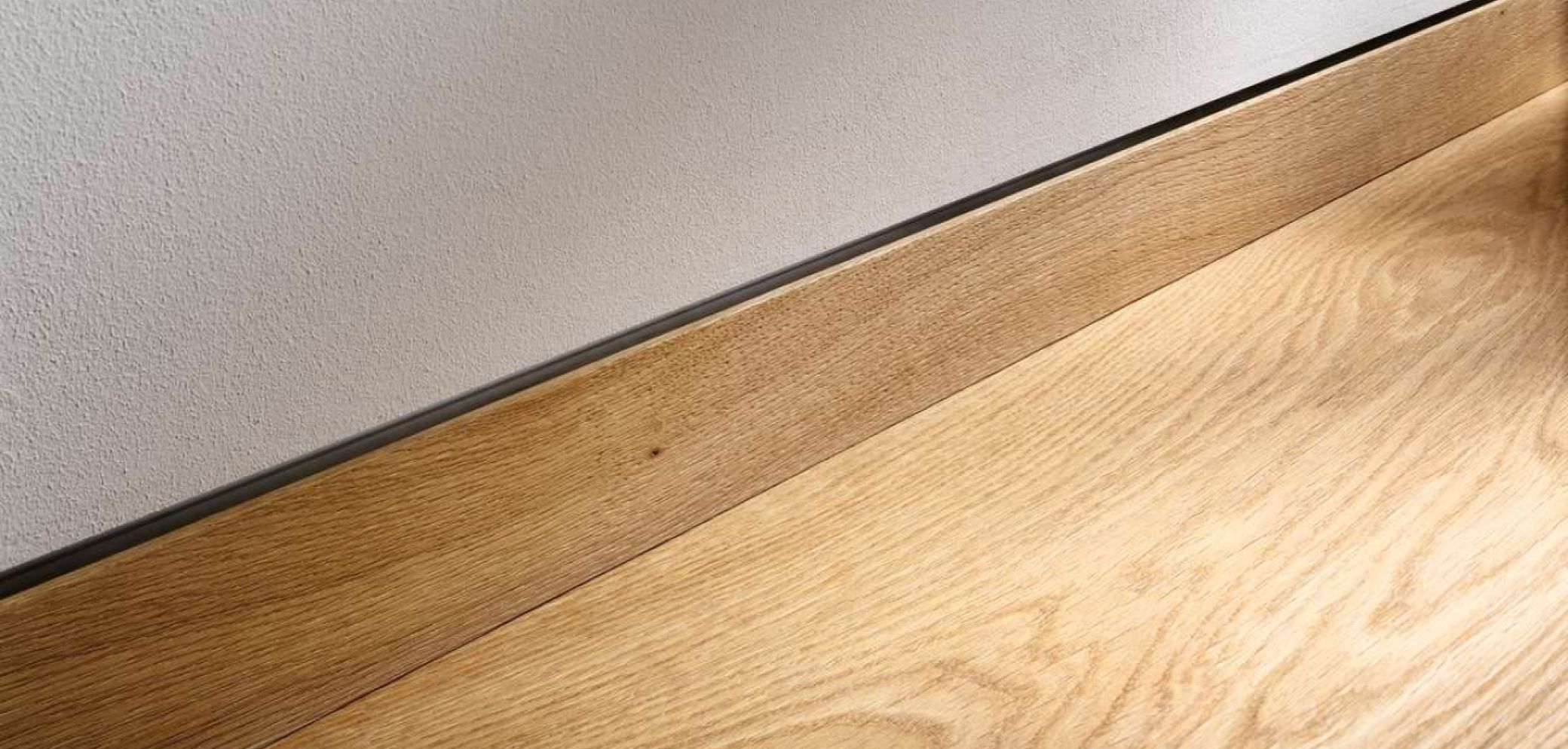 Der rechtwinklige Boden-Wand-Abschluss aus der Reihe «Floor S» vom österreichischen Hersteller Admonter Holzindustrie AG hat keine störenden Vorsprünge und Kanten. Das Grundprofil aus Aluminium wird schon in der Rohbauphase beim Wandaufbau und vor der Estrichverlegung montiert. Anschliessend wird die Sockelleiste aus Massivholz nach der Bodenmontage eingesetzt. Das Grundprofil verfügt über eine integrierte Höhenlehre für den Estrichleger und ist geeignet für Massiv- und Trockenbauwände. Bei Höhentoleranzen ist eine nachträgliche Feinjustierung möglich. Zudem sind eine indirekte LED-Beleuchtung und eine Trittschallentkopplung möglich. Der Sockel kann in nahezu allen Holzarten und Oberflächen von Admonter geliefert werden und hat eine Stärke von 12,5 Millimetern.
