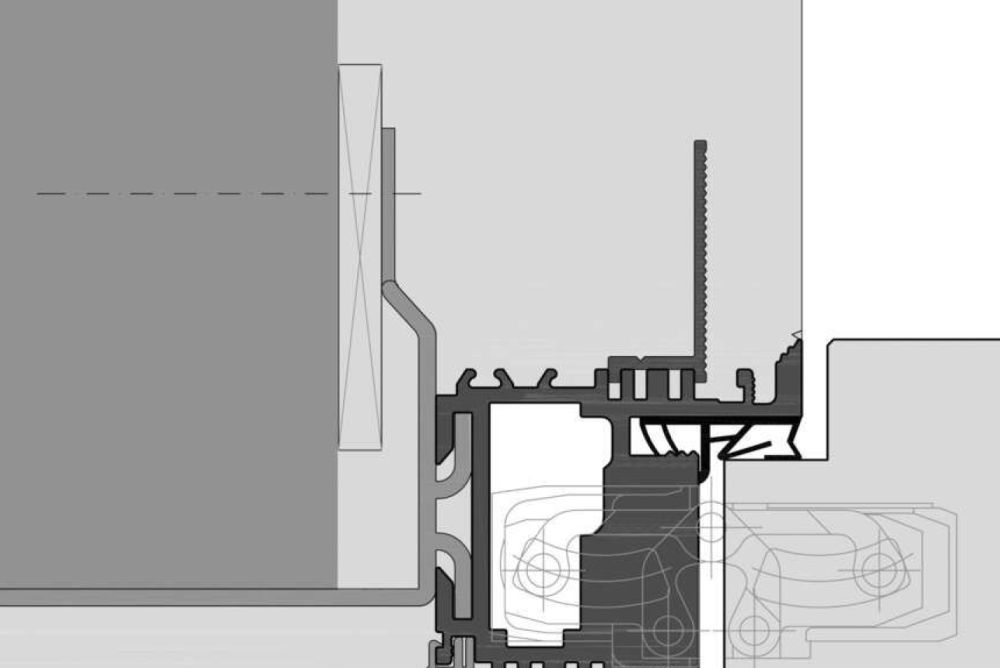 Verdeckte Bänder erlauben unterbruchsfreie Fugen. Damit auch auf der Schliessseite die Fuge immer perfekt aussieht, muss das Schloss über eine Magnetfalle verfügen. Ansonsten müsste ein Lappenschliessblech eingebaut werden, was der Optik stark schaden würde. Mit einem solchen Rahmenprofil lässt sich natürlich auch eine raumhohe Tür ohne oberes Querprofil umsetzen. Eine nach oben ausfahrende Senkschwelle dichtet dann diesen Bereich bei Bedarf ab.