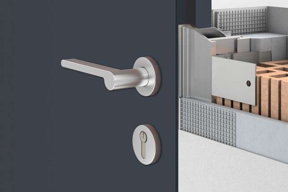 Die Bezeichnung «Türen ohne sichtbaren Rahmen» weist schon darauf hin, dass sie einen Rahmen haben. Dieser besteht aus einem Aluminiumprofil, welches so kon-struiert ist, dass es in die Mauer oder die Trockenbauwand integriert wird und unter der Aussenschicht der Wand verschwindet. Es bietet einen Falz mit Dichtungsebene und kann alle notwendigen Beschläge aufnehmen. Bei den meisten angebotenen Systemen zeigt sich bei geöffneter Tür das Aluminium, es gibt aber auch Rahmenmodelle, in die eine Holzleiste eingebracht werden kann und so nur sehr wenig von dem Metall sichtbar wird.