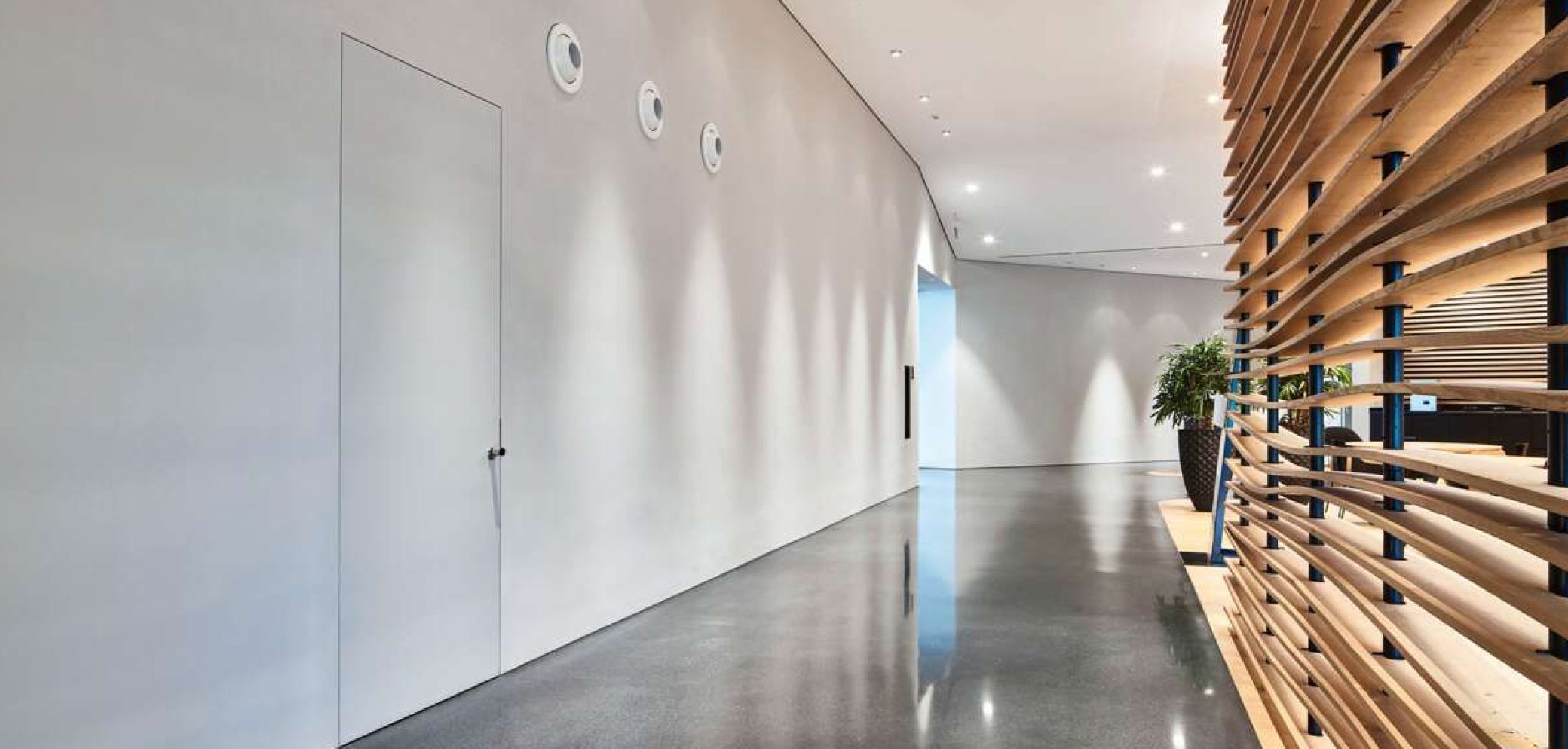 Absolut nichts soll den Blick vom optisch dominanten Raumtrenner ablenken. Bild: Schörghuber Spezialtüren KG
