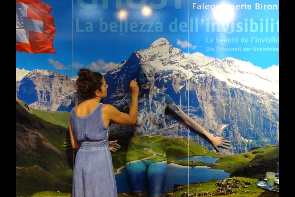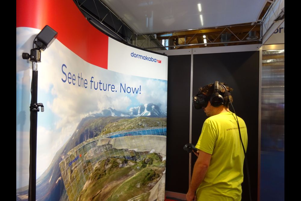 50 Anbieter sind mit von der Partie, einige haben neu erschienene Produkte oder sogar Weltneuheiten im Gepäck. Auffallend sind die kreativen Auftritte der Aussteller. Zum Beispiel jener der Falegnameria MC Cattani SA aus Bironico TI, welche eine Aluminium-Zarge für flächenbündige Innentüren vertreibt. «Die Schönheit der Unsichtbarkeit» ist ihr Messemotto. Die Firma verdeutlicht dieses, indem im Laufe des Messenachmittags eine Frau von einer Künstlerin so perfekt bemalt wird, dass sie vor dem Bergpanorama im Hintergrund kaum mehr zu erkennen ist.